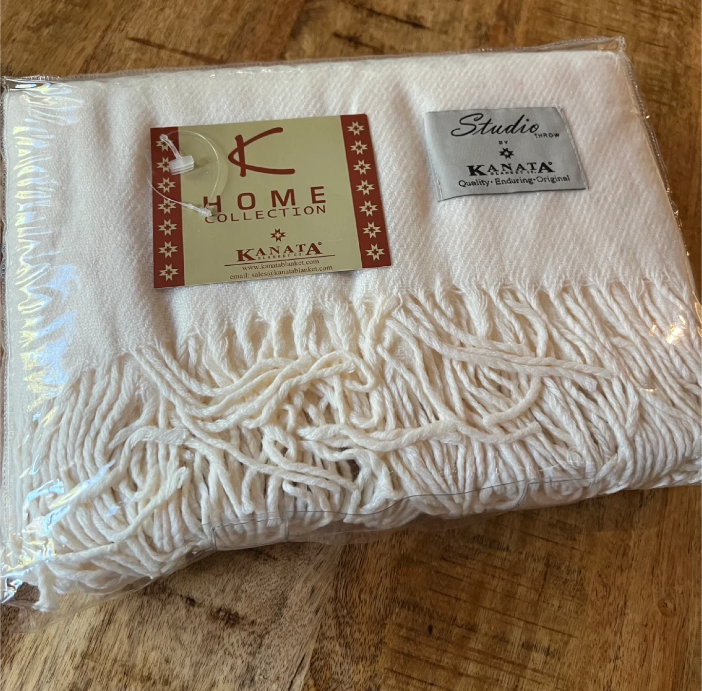 Brand new/original packaging Kanata Home Collection Measuring approximately 52” x 76” Lightweight Beautiful ivory colour Very soft Ideal for draping over a sofa, chair, or a bed Asking $15 Interested? Message me and please check my other listings…