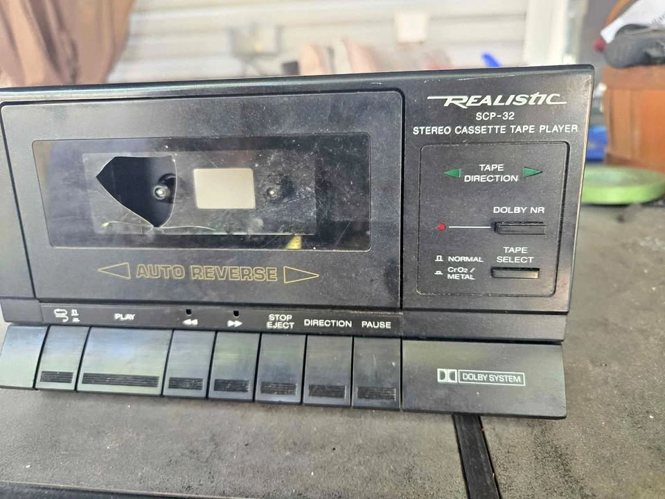 Listen to your favourite tapes with this Realistic SCP-32 stereo cassette tape player! This unit is in fair condition, showing signs of use but is still functional for playing your favourite cassette tapes. Here are some key features: * Auto Reverse * Dolby Noise Reduction * Standard RCA Line Out *Sold as is* Rediscover your old mixtapes or explore vintage sounds! Available if the ad is up – a little blast from the past ready to find a new home! Considering its condition and functionality, I'm asking $25