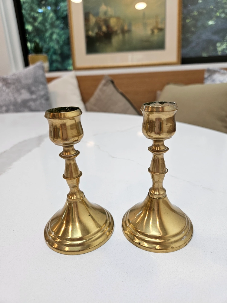 Selling a collection of vintage brass items! Includes candlestick holders, a candle snuffer, a small pot, and other decorative pieces. These items have a lovely patina and would add a touch of old-world charm to any home. $5 per item or make an offer :)