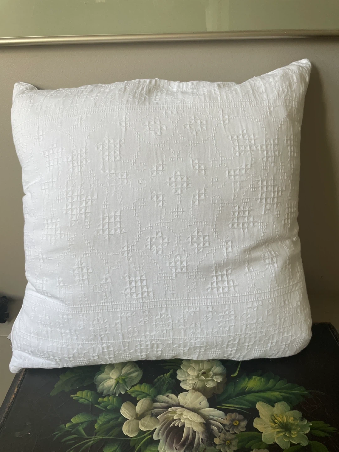 $20 FOR BOTH Two lovely bright white decorative pillows!! Have a zipper so you can easily remove the cover for washing. The pillows are new in great condition and would look great on a couch or bed. Asking 20 for both We lost the rest of the set and we will not need the pillows. We never used them. Thank!