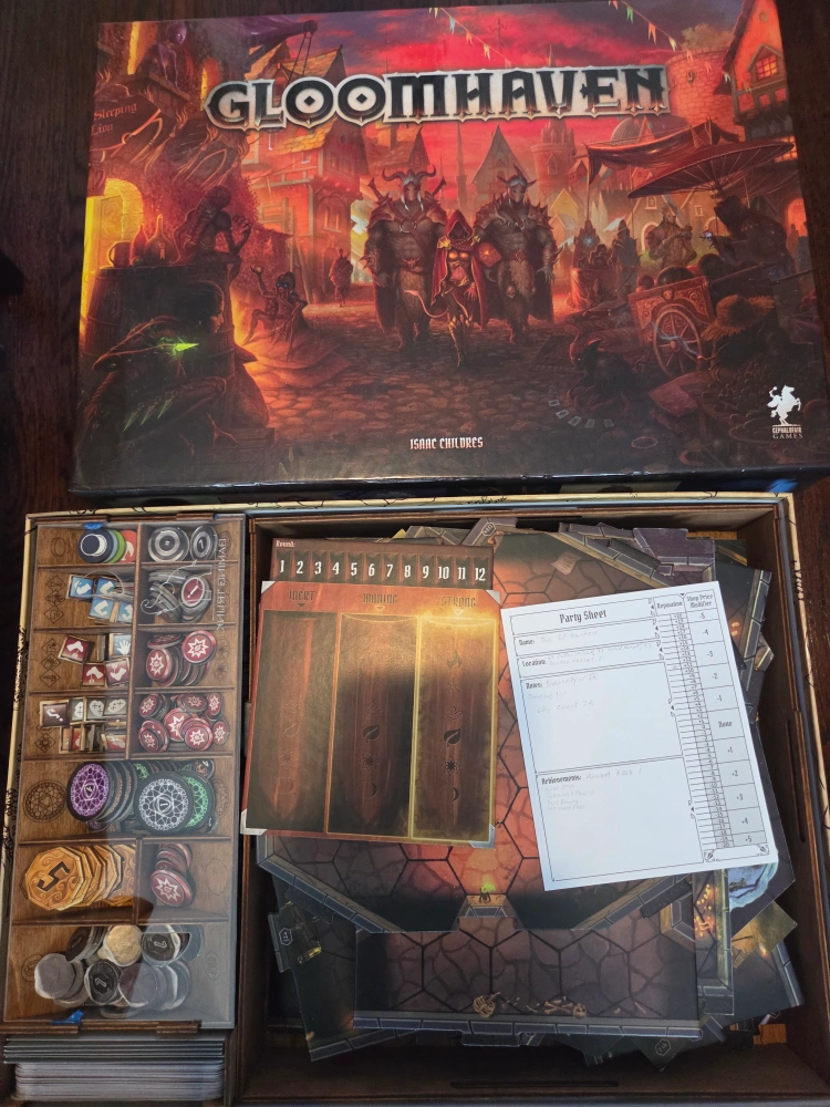 Selling a copy of Gloomhaven board game! It comes with a removable sticker set for locations, achievements, and enhancements, plus replacement seals for envelopes and boxes. The sticker set is compatible with Gloomhaven 1st and 2nd printing. Also included is the Gaming Trunk insert organizer to speed up set up and clean up. Great for game nights!