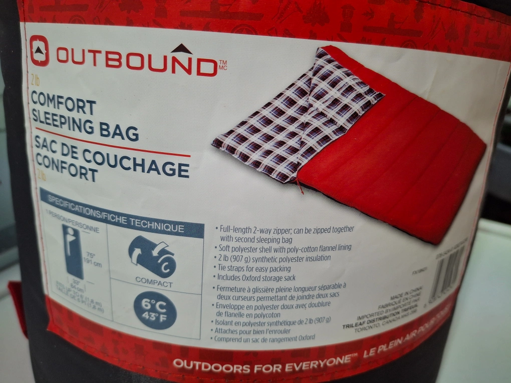 This Outbound 2lb Comfort Sleeping Bag is perfect for outdoor adventures! It features a soft polyester shell with a poly-cotton flannel lining. It's compact and rated for 6°C/43°F.