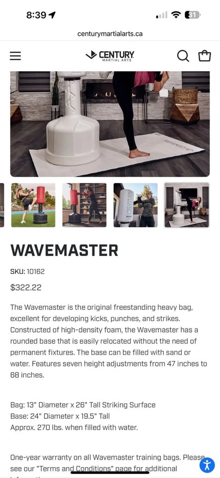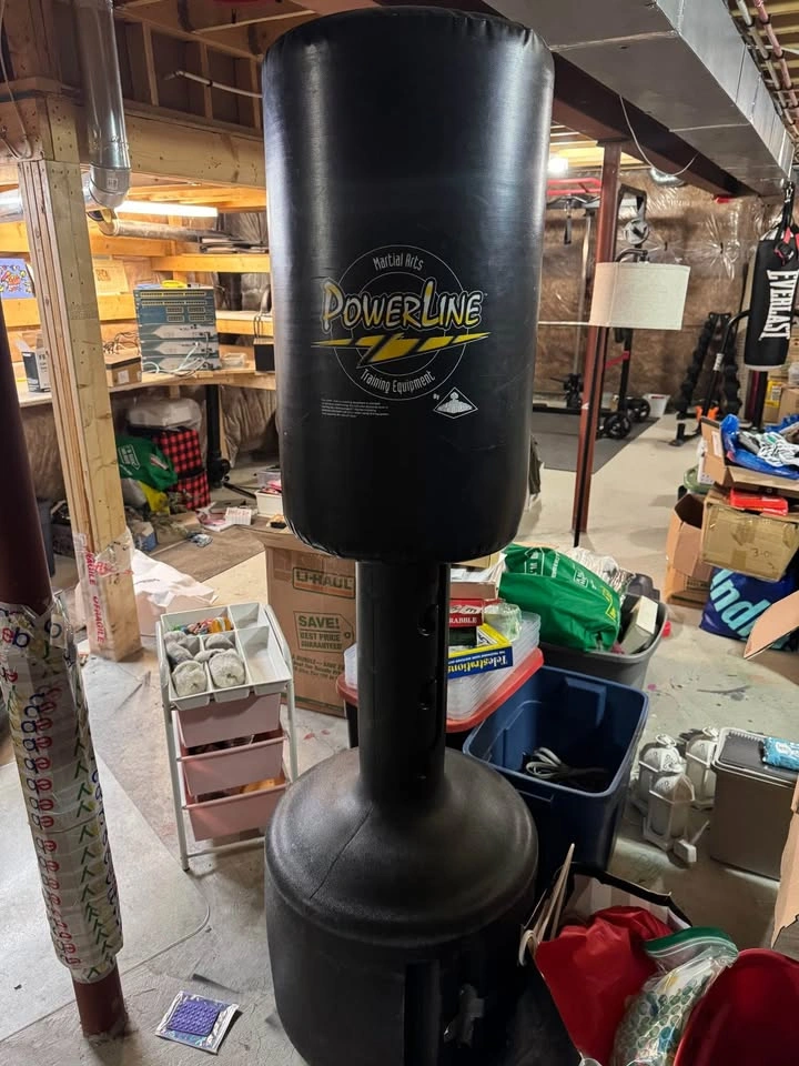 My son wanted to go into Muay Thai but lost interest. Note: His room is on the 2nd floor of our house so instead of filling it up with water, we used sand. We emptied it off the sand when he was no longer into it so we can move it into our basement. Use water at your own discretion. See screenshot for features. Asking $60.