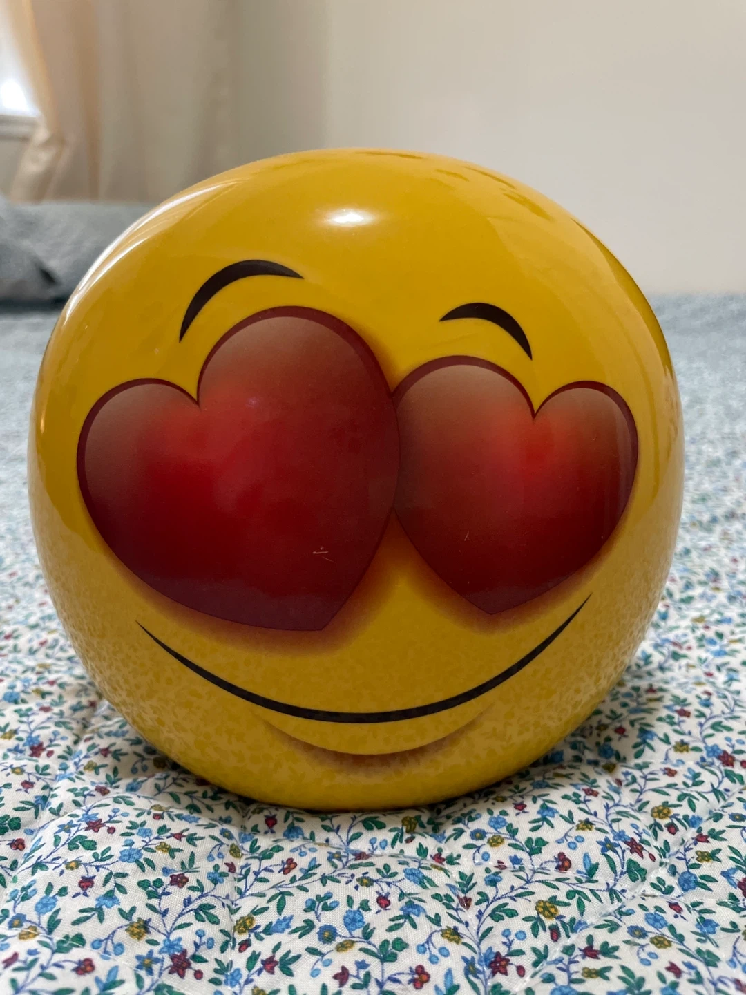 Selling a fun emoji smiley face coin bank! It's in great condition and ready to help you save your change. Perfect for adding a bit of cheer to any room