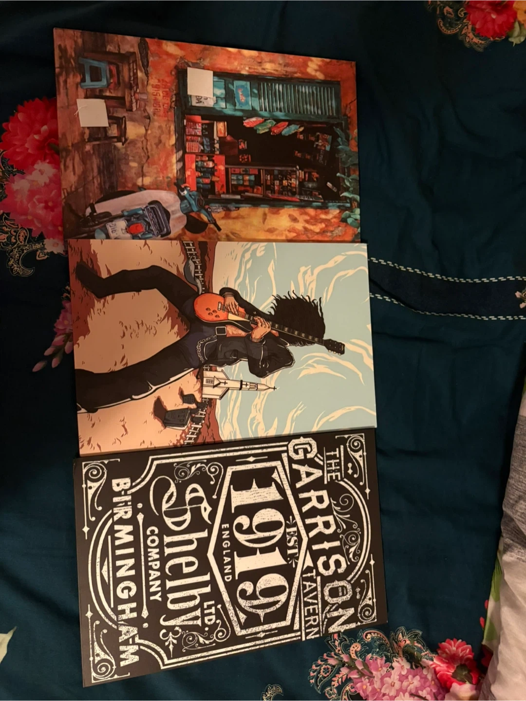 Selling a set of three framed art prints inspired by Peaky Blinders and Guns n Roses. pickup only 15 for each or $40 total