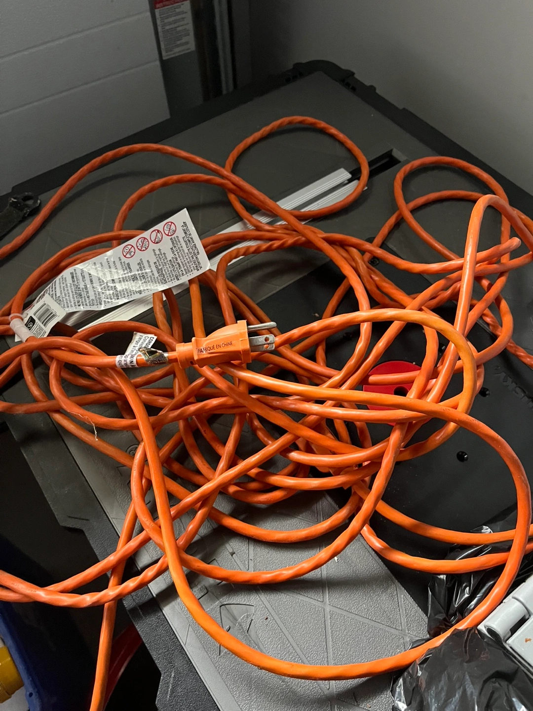 Selling an orange extension cord. Please see photos for details and condition 50ft 16 gauge