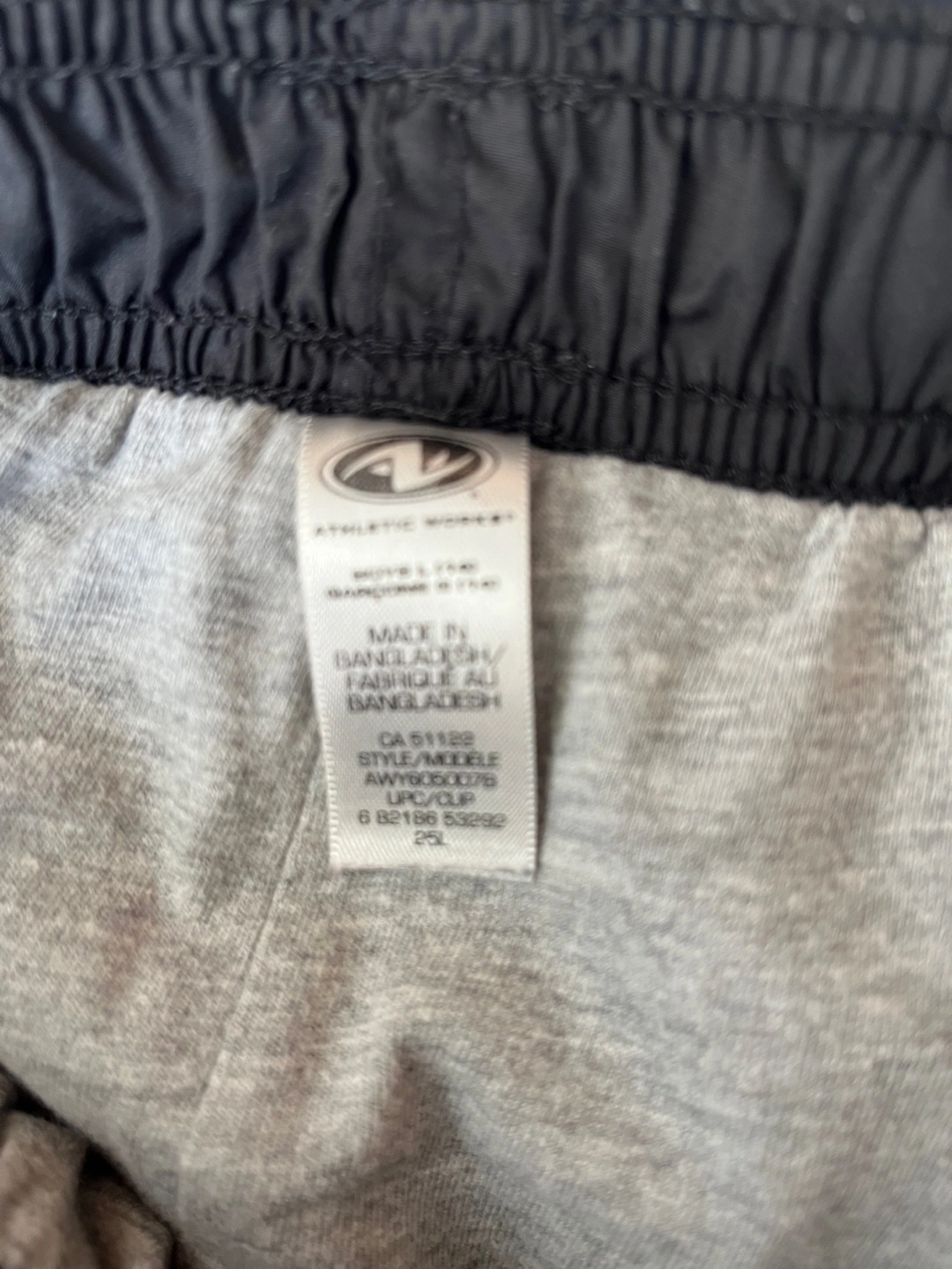 Selling a pair of Athletic Works track pants. They're black and size XL. The style number is AWY00500278. Made in Bangladesh!