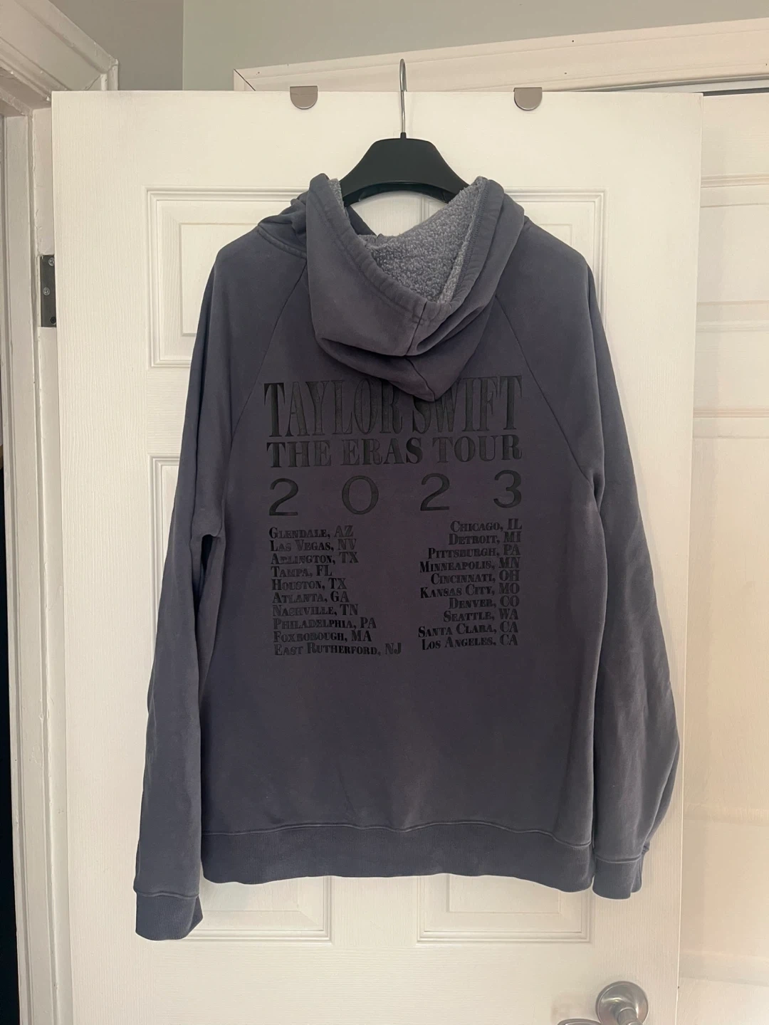 Selling a Taylor Swift The Eras Tour hoodie. It's in great condition and perfect for any Swiftie! The hoodie is a size medium and features the tour dates and locations on the back. It's a cozy and stylish way to show your love for Taylor Swift and her music. **Worn twice, fits more like a large-xl. The logos have been ironed and do not fade in the wash.
