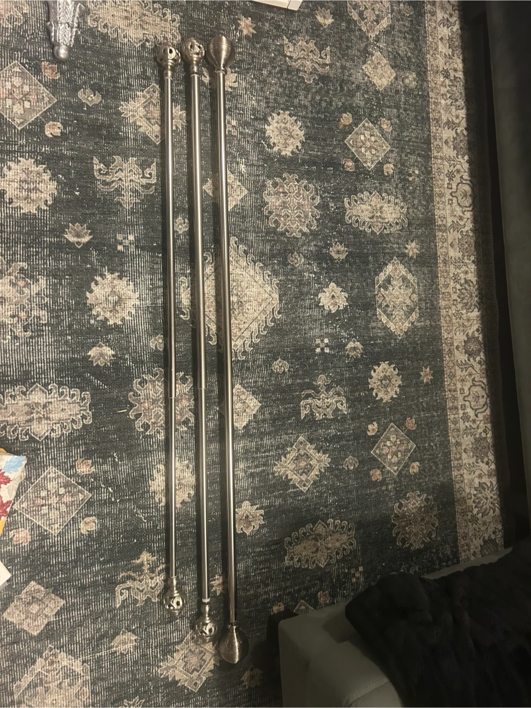Selling a set of three curtain rods. They are in great condition and ready to hang in your home! They have decorative ends on each rod. $5.00 each