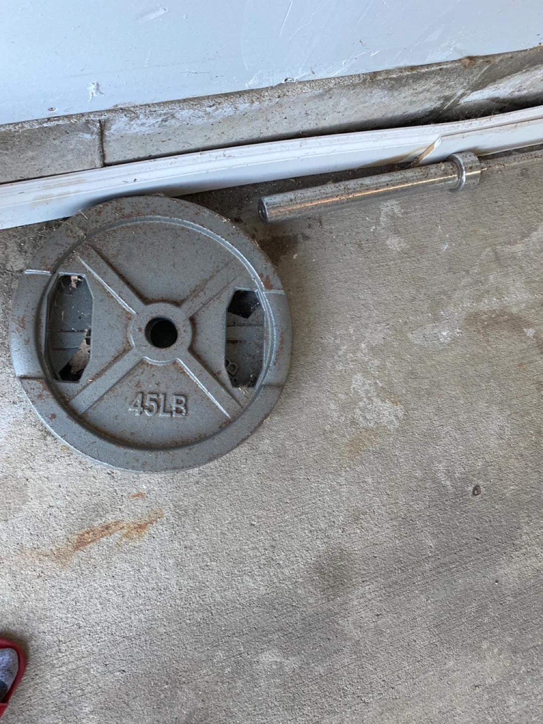 Selling 2 45LB weight plate and a barbell. Both show signs of use and some rust, but are still perfectly functional for your home gym needs! Great for weightlifting and strength training