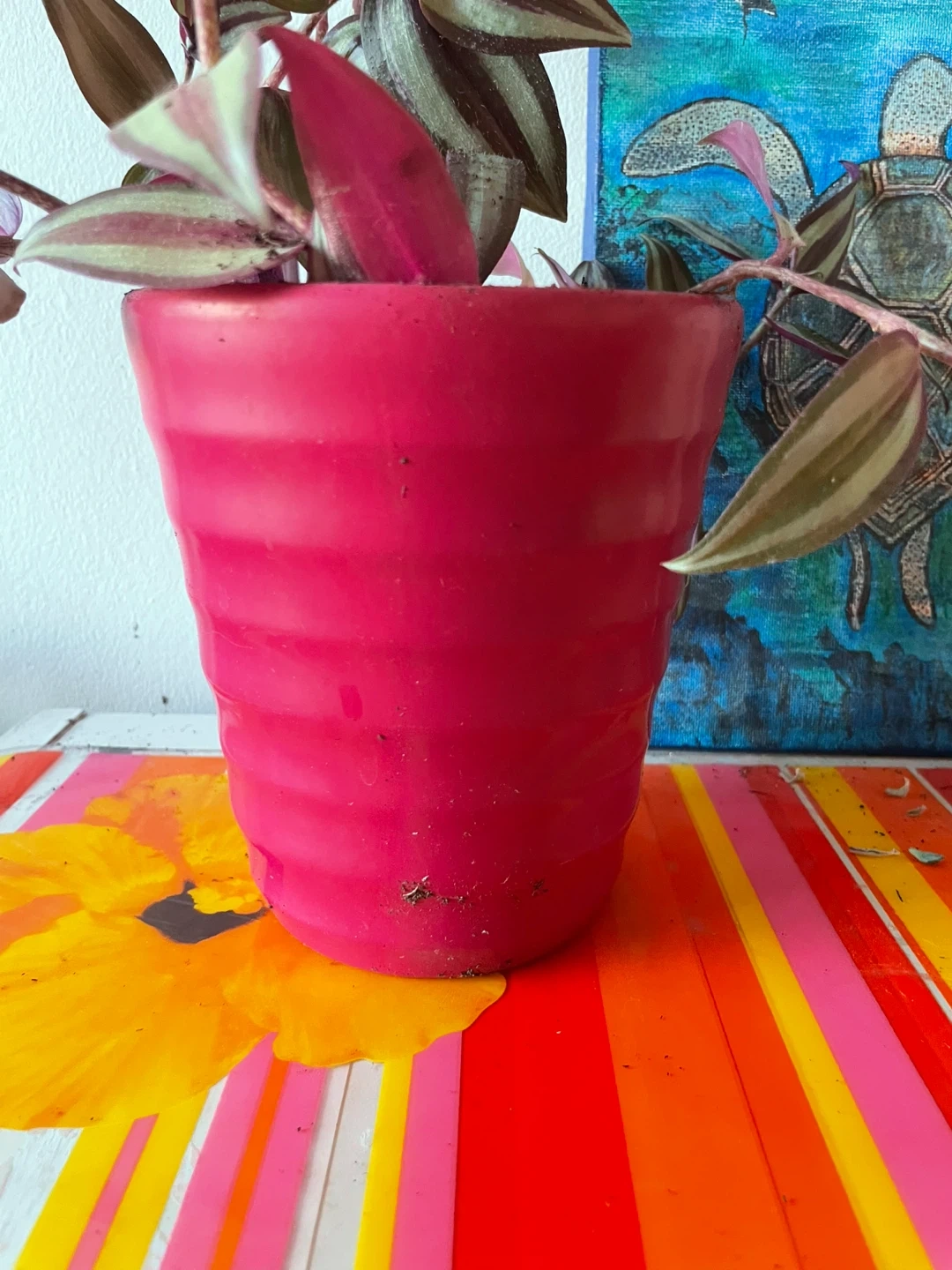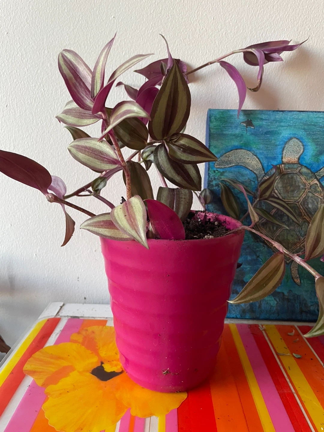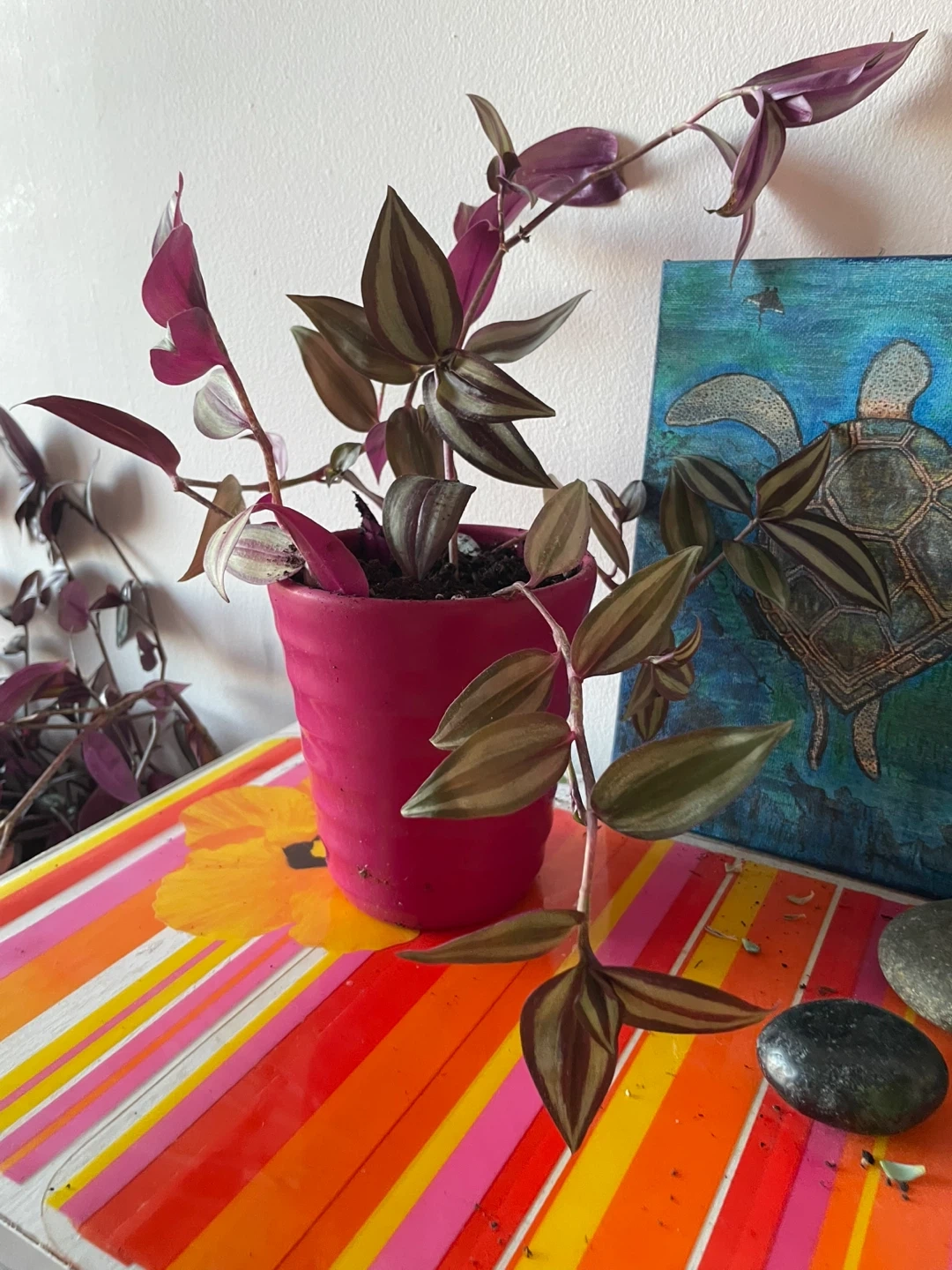 Tradescantia zebrina plant in a pink pot. a popular houseplant known for its striking foliage. This one comes in a cute pink pot and is ready to brighten up your space. These grow like crazy and drape over everything. I can provide extra cuttings if you wish as well. Pick up near Yonge and eglinton