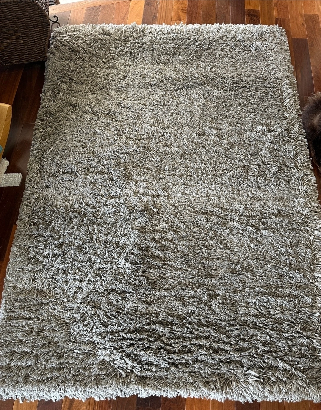 Selling a shag rug in a Grey tone. It's in good condition and would be a cozy addition to any room! It's perfect for adding some texture and warmth to your space