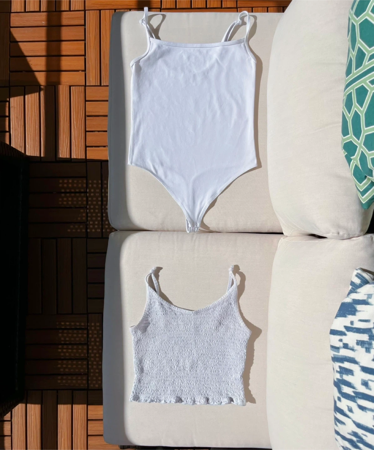 Both are size M -One is a white bodysuit from Wilfred Free $10 -The other is a light blue smocked tank from Hollister California $5 Pick up in downtown Check out my other listings, willing to bundle items as well.
