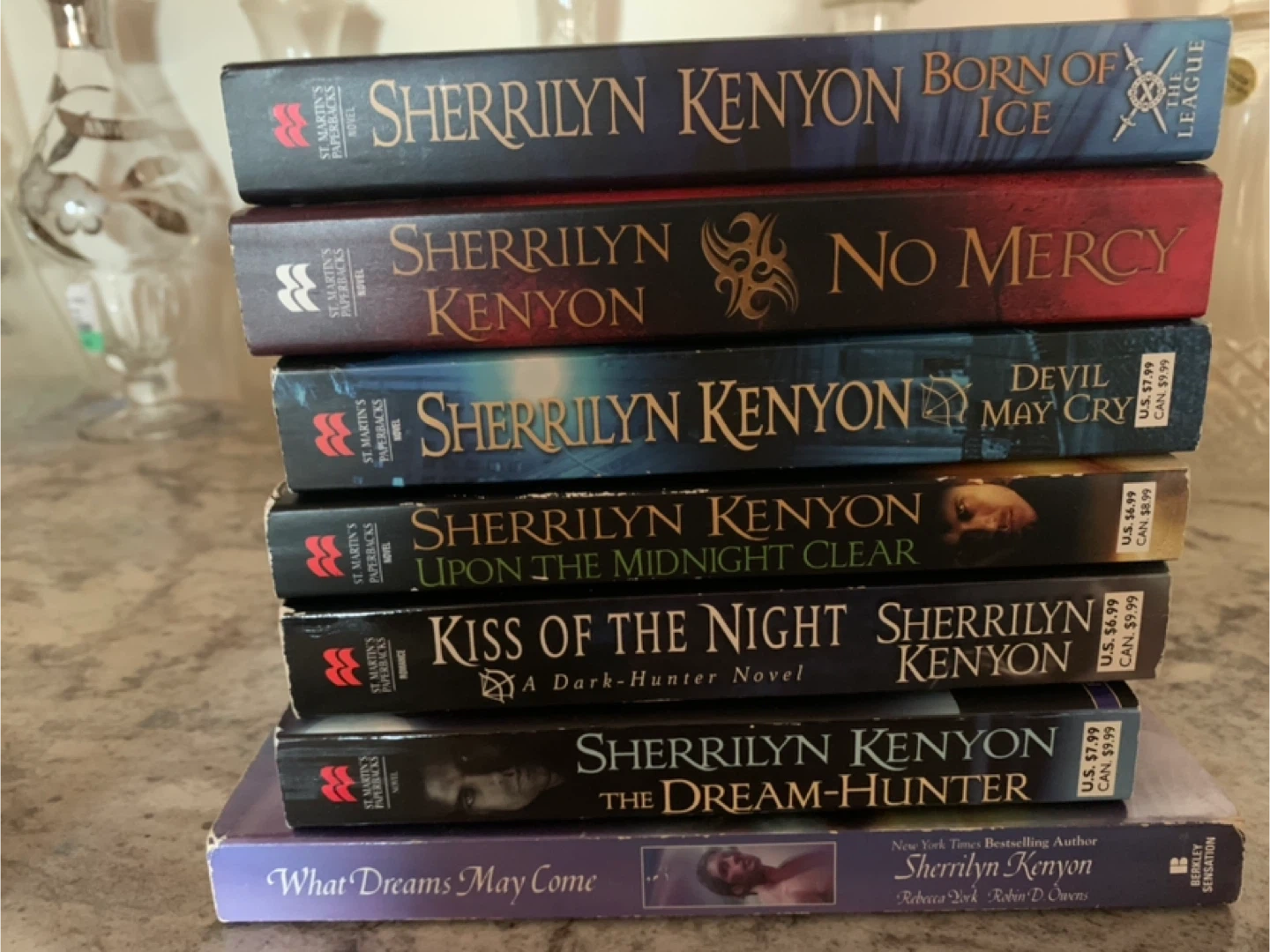 Selling a set of seven Sherrilyn Kenyon novels! Titles include Born of Ice, No Mercy, Devil May Cry, Upon the Midnight Clear, Kiss of the Night (A Dark-Hunter Novel), The Dream-Hunter, and What Dreams May Come