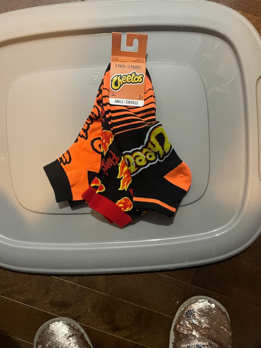 Here's a brand new 3-pack of Cheetos ankle socks! These fun socks feature Cheetos-themed designs in vibrant colours. Perfect for any Cheetos fan!
