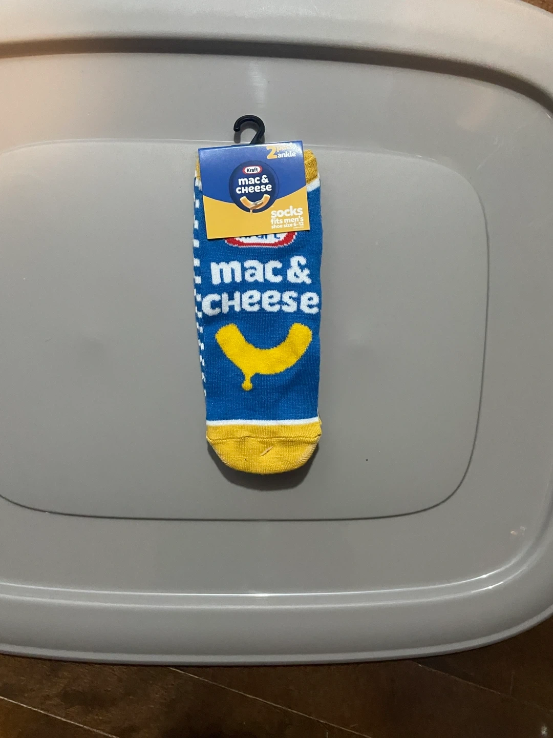 Get your cheesy sock game on with these Kraft Mac & Cheese socks! They fit men's shoe size 6-12 and feature a fun mac & cheese design on a blue background. Perfect for any mac & cheese lover!