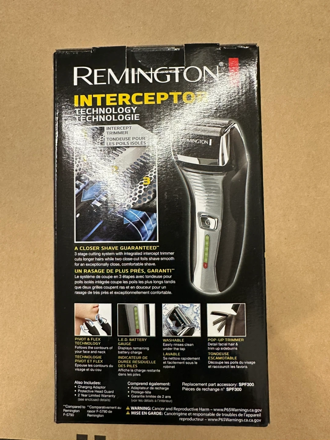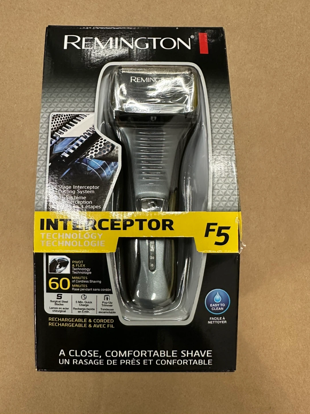 Selling a brand new Remington Interceptor F5 electric foil shaver, still in its original packaging! This shaver features intercept technology for a close and comfortable shave. It has a pivot and flex technology that adjusts to the contours of your face and neck. It's also washable, making it easy to clean under the tap. Includes a charging adapter.