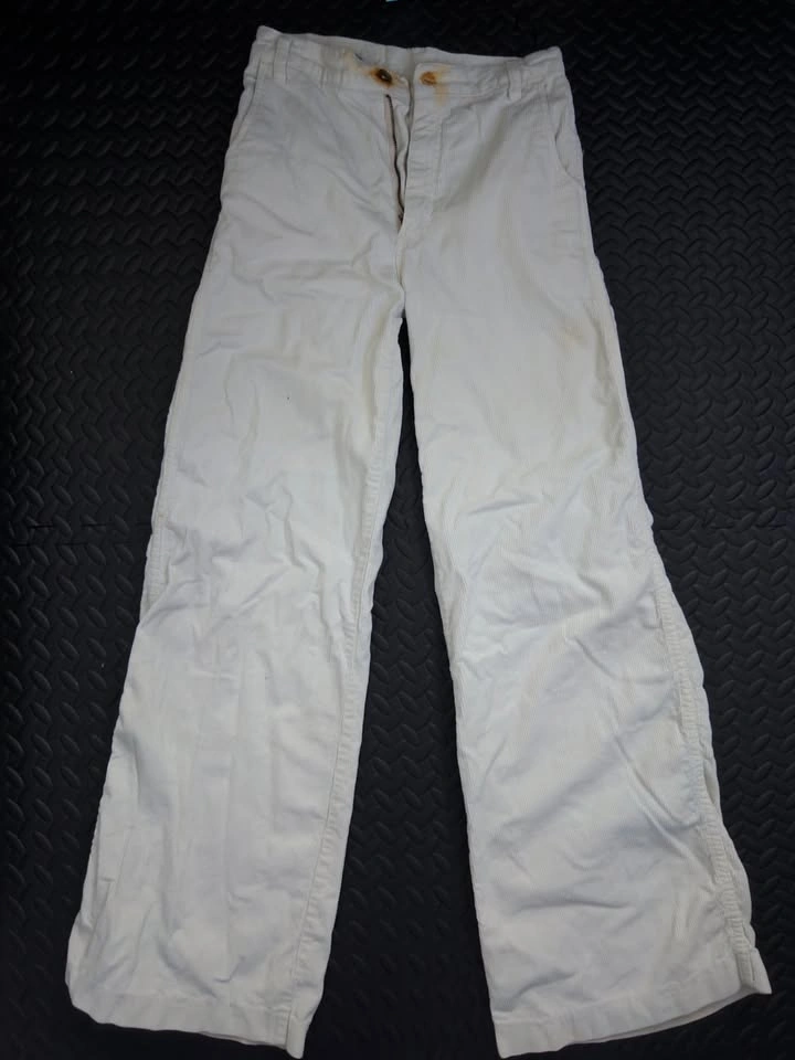 Vintage Pants for sales. $6 each, or $15 for all 3. Size around 26~28. Got these from a flea market. They turned out to be too small. All fully clean and washed, and ready to wear! Note: - There are rust stains on the white jean. - The zip of the deep blue jean is broken. But other than that they are still good. I believe somebody can give them a new life!