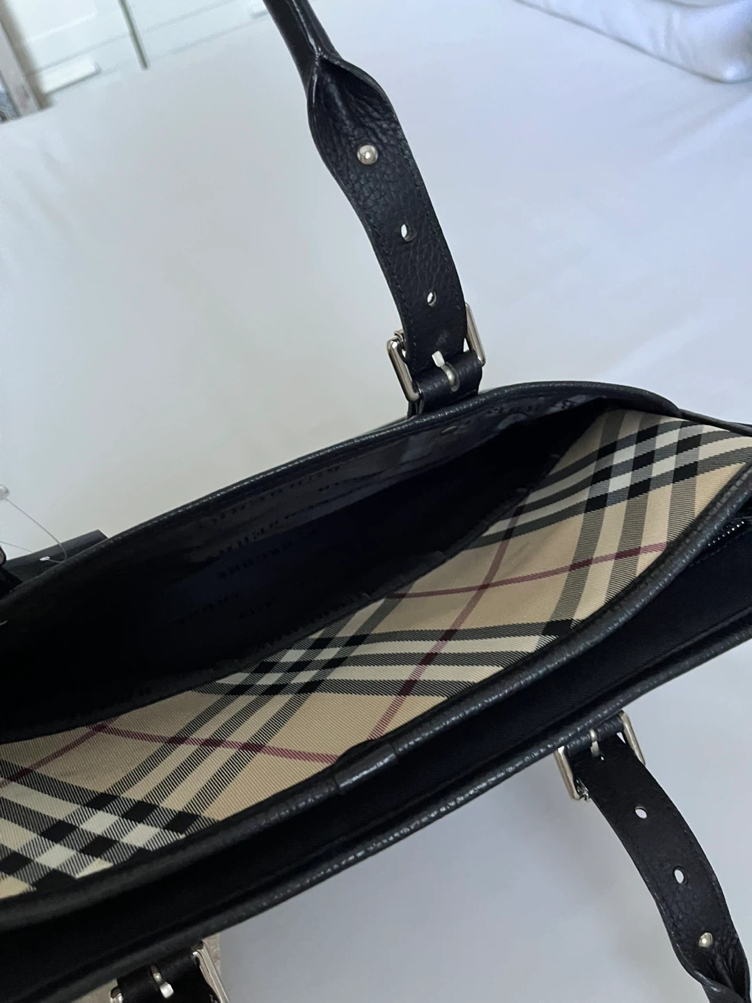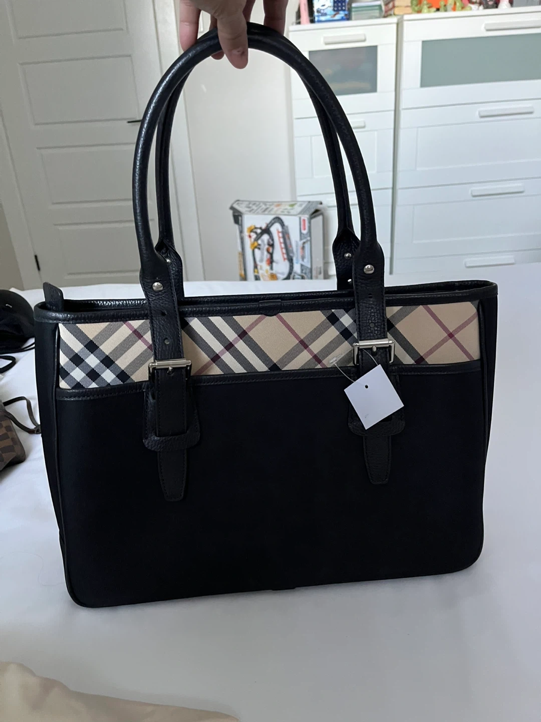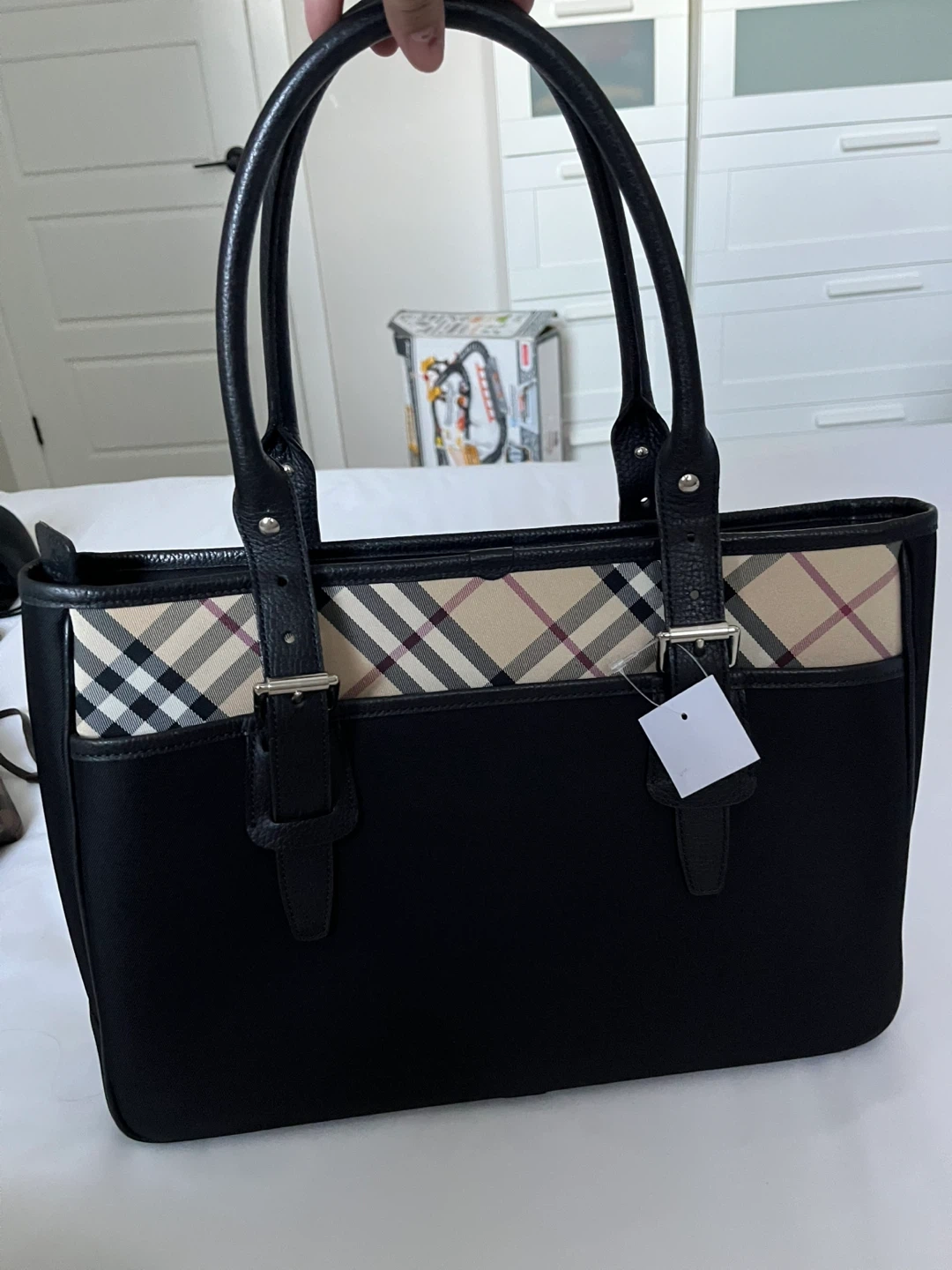 This is AUTHENTIC PRE LOVED Burberry tote bag in black with the classic Burberry check pattern. It's in great condition and ready for a new home!