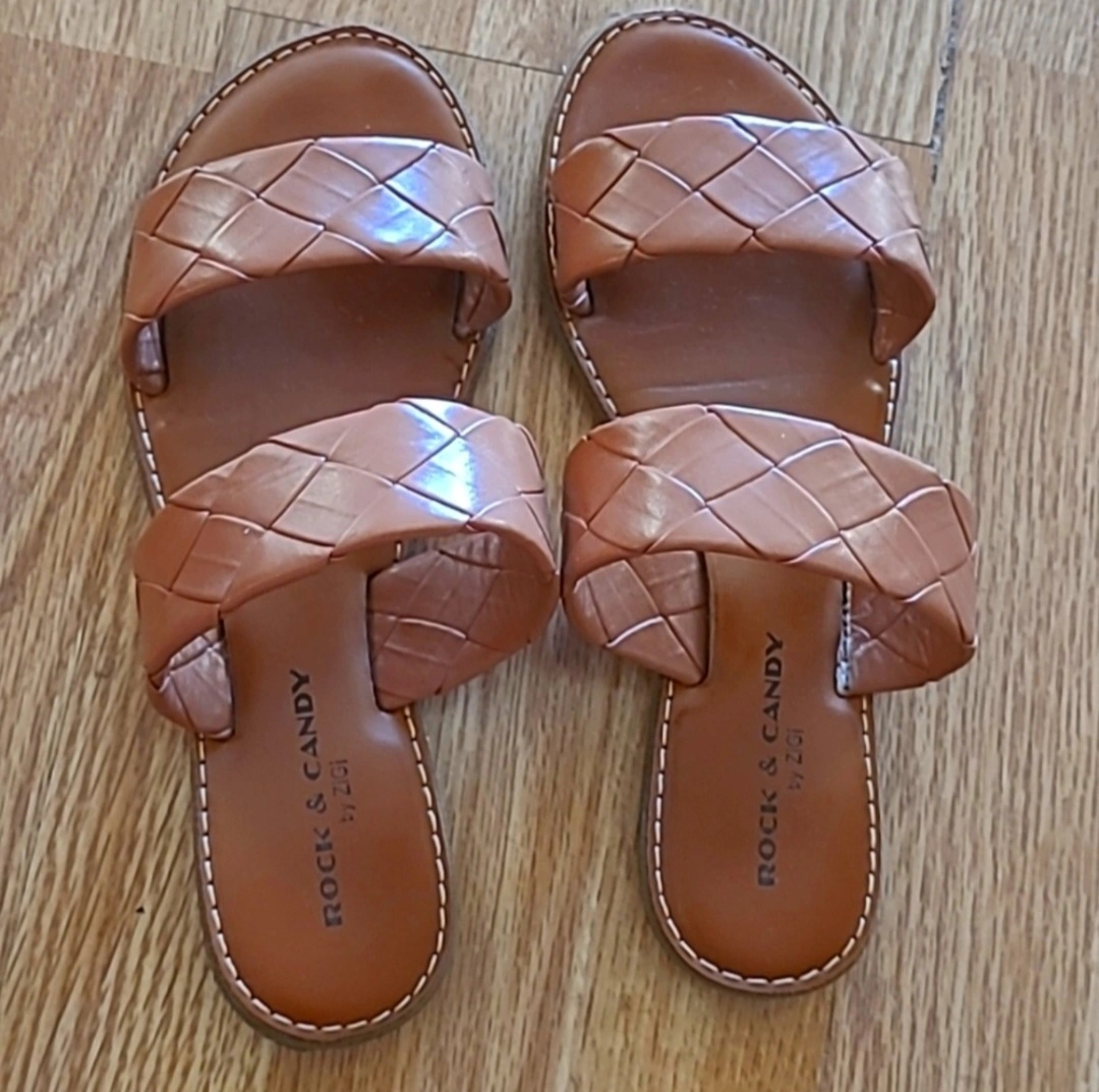 These Rock & Candy sandals are a stylish and comfortable choice for everyday wear! They feature a woven design and are in a lovely brown colour. The size is US 8. The upper and sole are synthetic. In very good condition.
