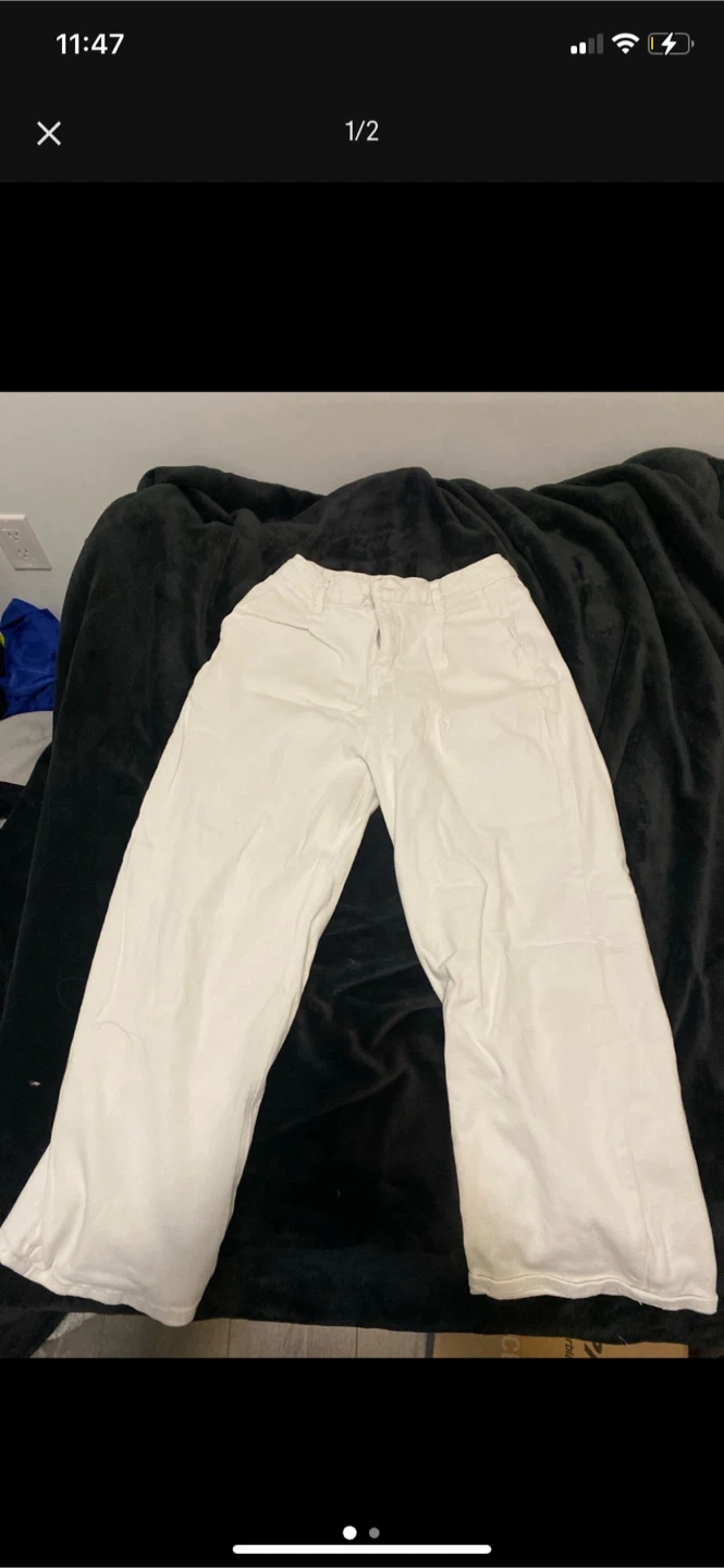 Selling these white wide leg pants! They are in great condition and ready for a new home. Perfect for a casual day out or dressing up for a night out. They're super comfy and stylish!