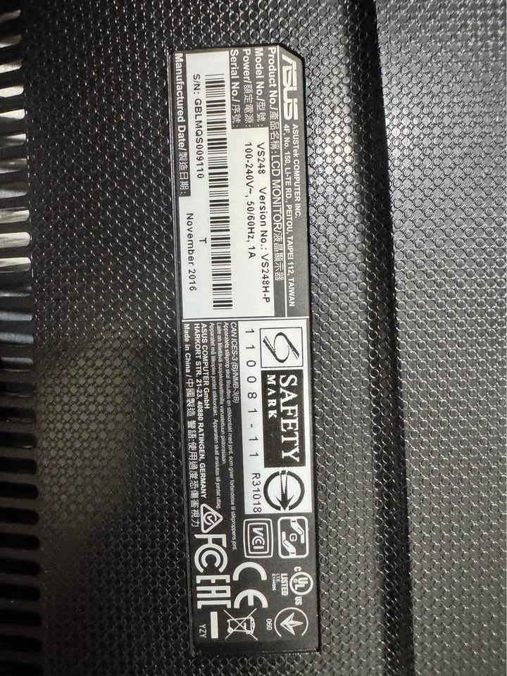 I have approximately 10 ASUS monitors, 5 dual monitor stands, and 7 single monitor stands available. I'd like to sell them all, ideally paired with a stand. Comes with a power cord. ASUS monitor VS248H-P key specs: Panel size: 24-inch (diagonal) Aspect ratio: 16:9 Native resolution: Full HD, 1920 × 1080 pixels Pixel pitch: ~0.2768 mm Brightness: 250 cd/m² (typical) Contrast ratio (typical): 1000:1 Dynamic contrast (ASCR): 50,000,000:1 Viewing angles: 170° horizontal / 160° vertical Response time: 2 ms (GtG) Refresh rate: 60 Hz max Inputs: HDMI, DVI-D, VGA Let me know if you're interested!