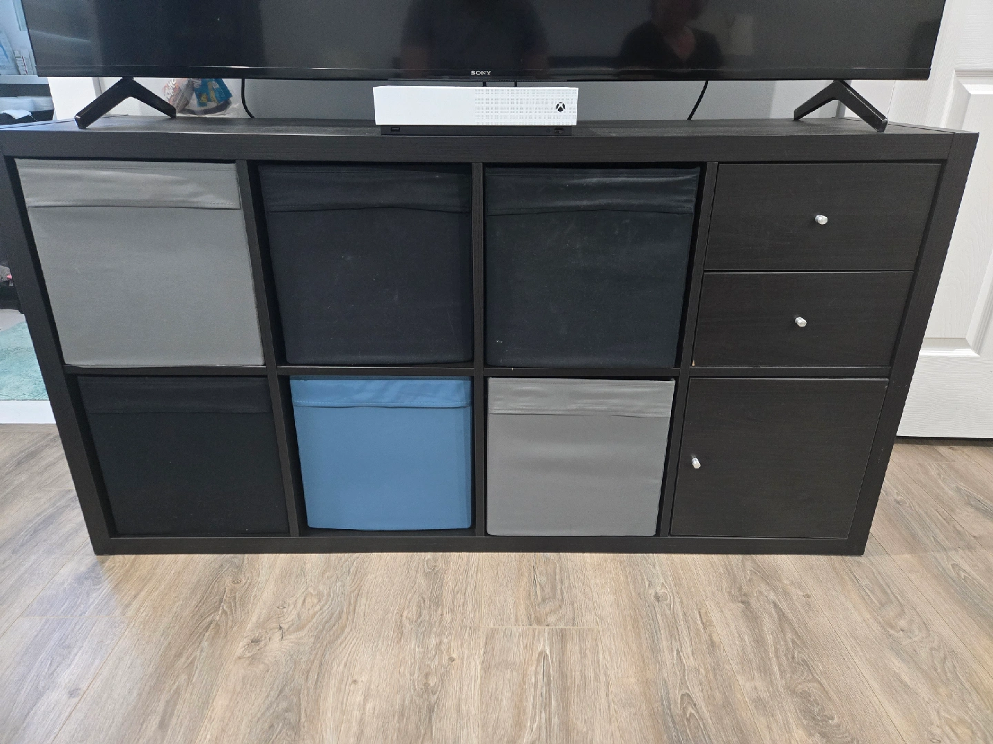 Selling a Kallax unit in good condition. do not include the baskets. Single column $35, double $50, $80 both. Perfect for organizing books, decor, or anything else you need to store. It's a simple and functional piece that would fit well in any room