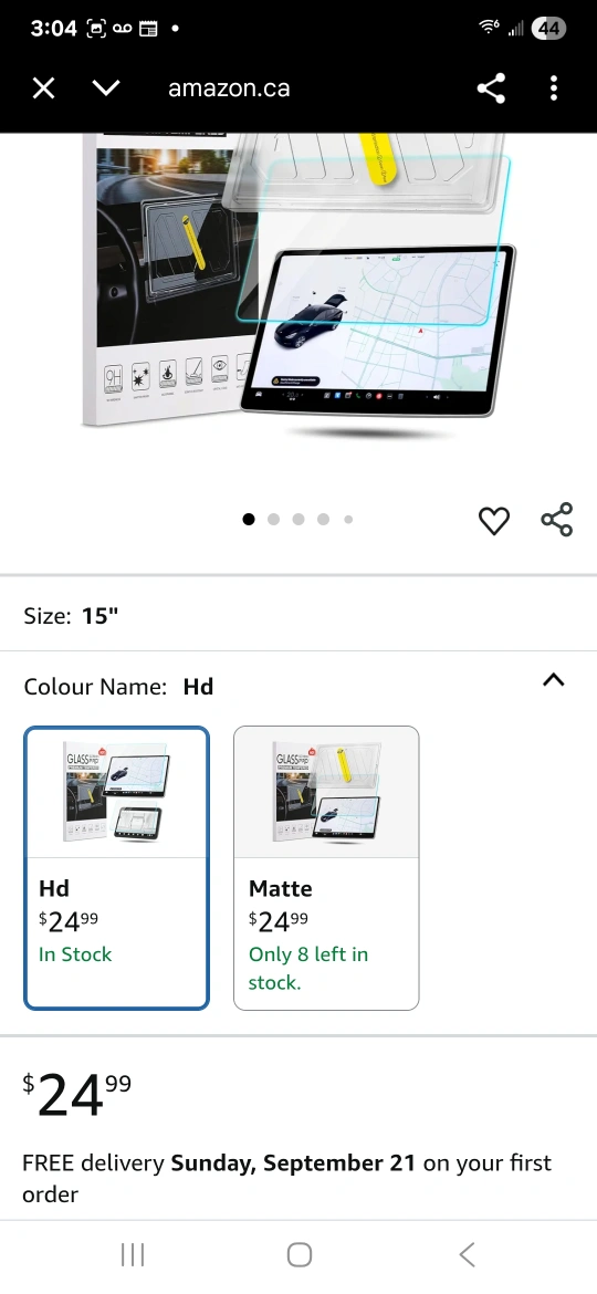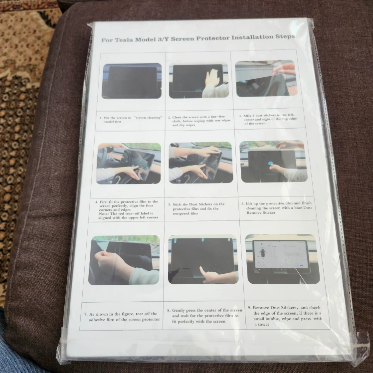 Brand new screen protector for Tesla Model 3/Y with a 15-inch screen. It offers maximum clarity and ultra-smooth protection. Features include 9H hardness, anti-blue light, anti-fingerprint, sensitive touch, explosion-proof, and 3D deflection. Originally bought for $24.99.
