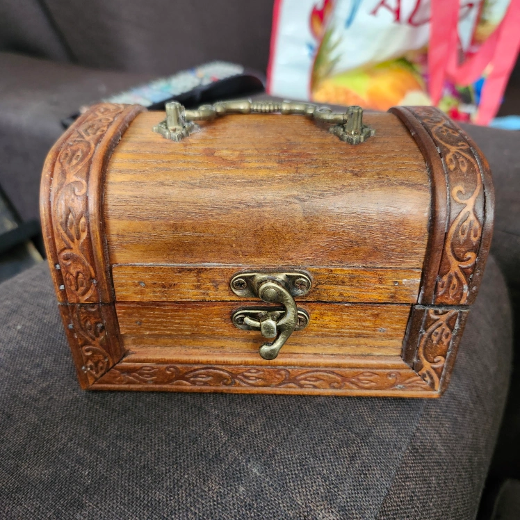 Selling a cute decorative wooden treasure chest! It's in great shape and would be perfect for storing small items or adding a touch of vintage charm to your home. The colour is Type 3 Yellow. Originally bought for $17.99