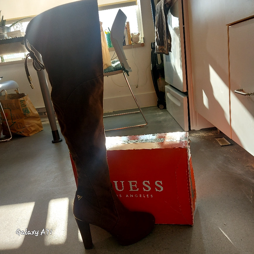 *BRAND NEW-NEVER WORN, CHOCOLATE-BRWN COLOURED SUEDE BOOTS. *THEY REACH ABOUT KNEE OR JUST ABOVE KNEE HEIGHT. *STILL IN ORINIAL BOC AND PACKAGING. *HAVE A HEEL. *ASKING $35 OBO. *SIZE 8 *NEED TO FOWNSIZE FOR MOVING TO S SMALLER APARTMENT VERY SOON. *THEY ARE TRUE TO SIZE!
