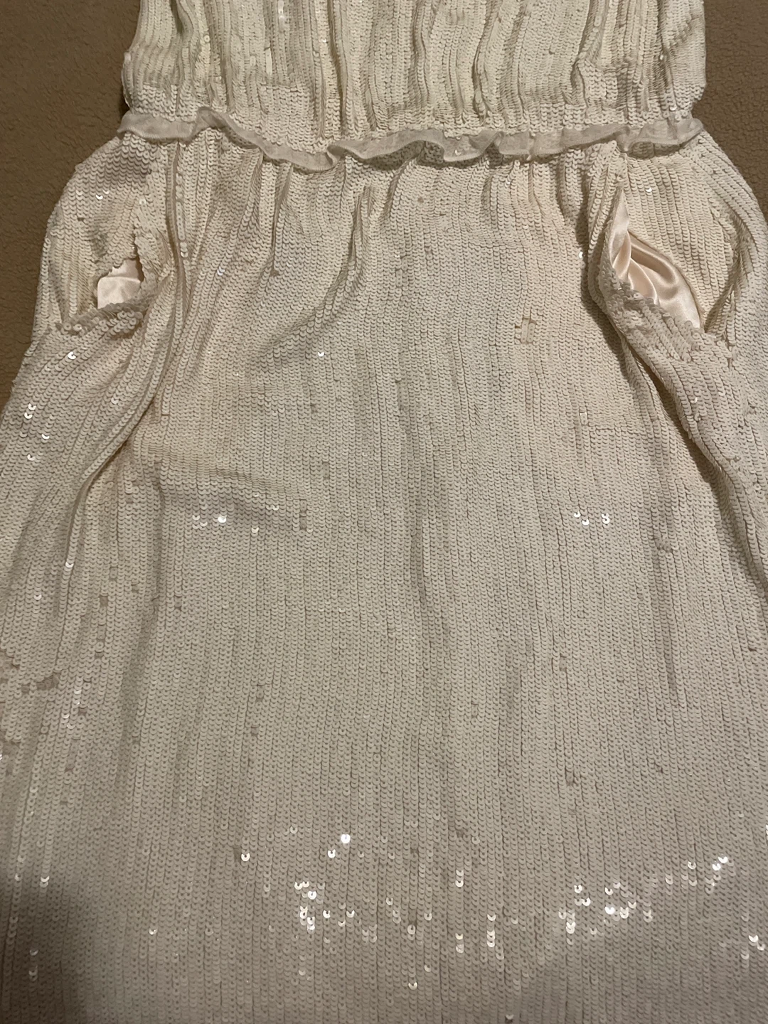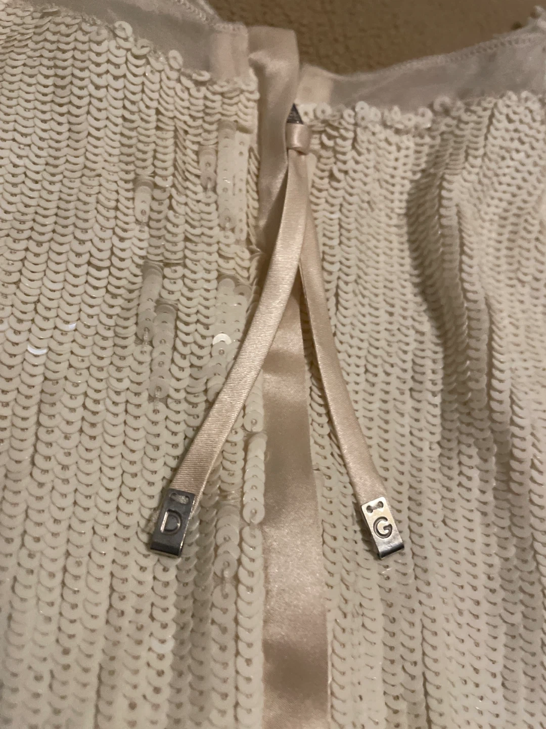 Here's a Dolce & Gabbana dress that's sure to turn heads! It features beautiful sequins throughout, giving it a glamorous and eye-catching look. The dress is in great condition and ready for its next special occasion