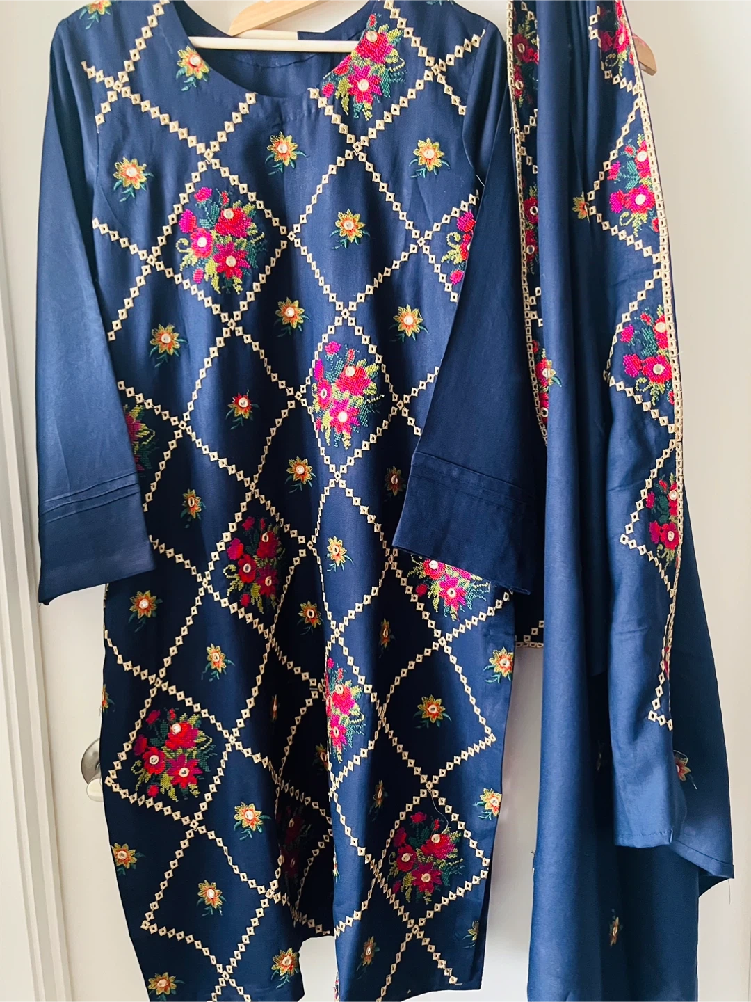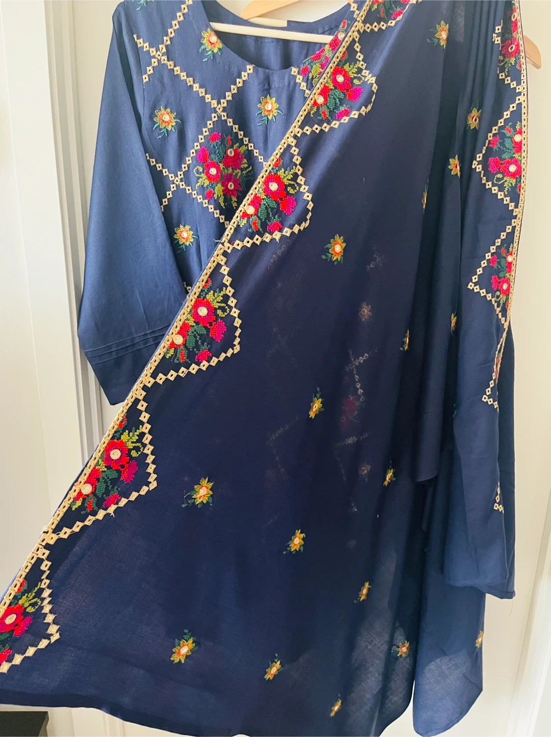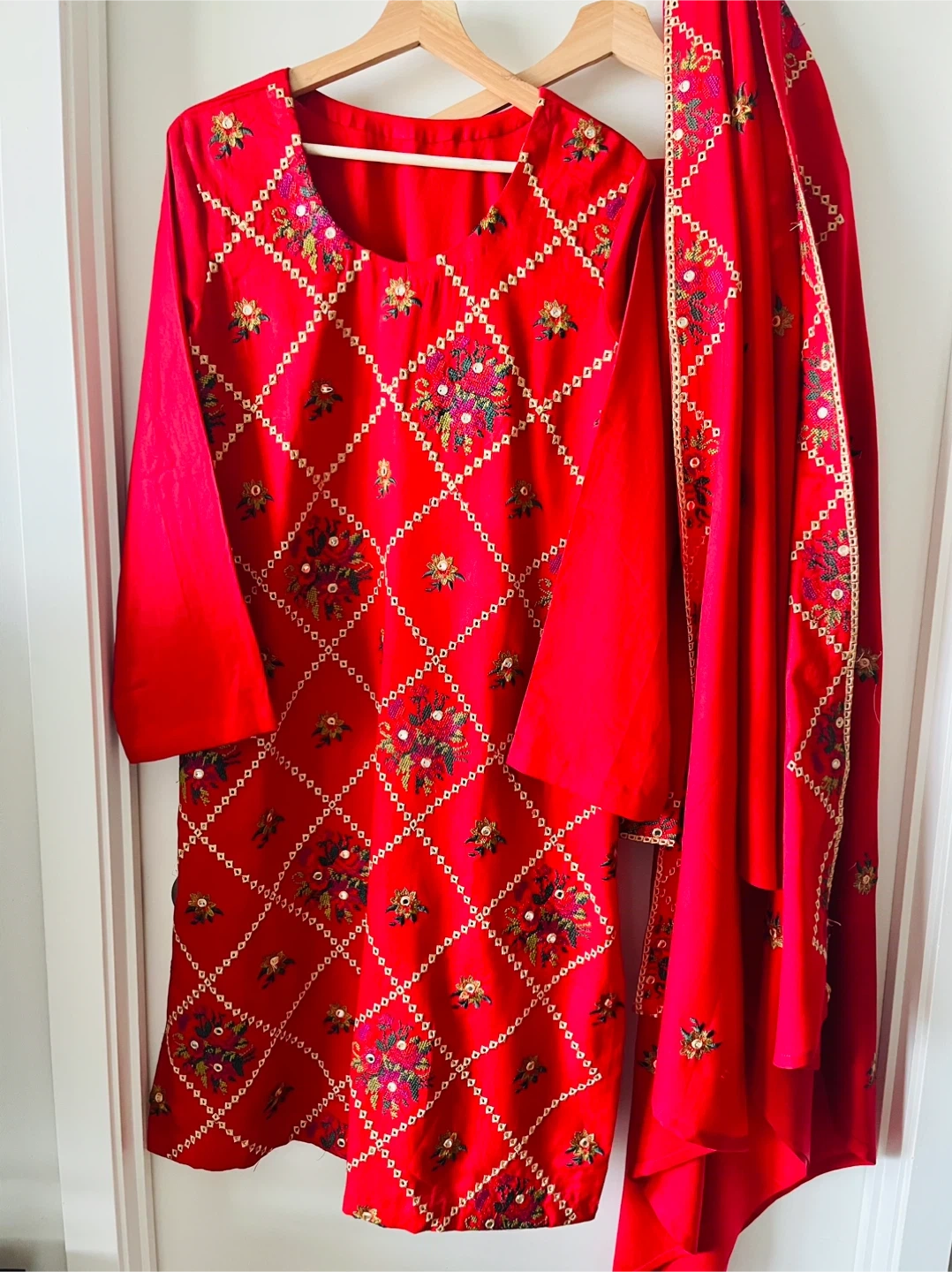 Dhanak 3pc suits new $30 firm As shown Sizes available medium, large, xlarge Includes trouser, kameez, dupatta Pickup is Erinmills and Eglinton, Mississauga. Smoke and pet free