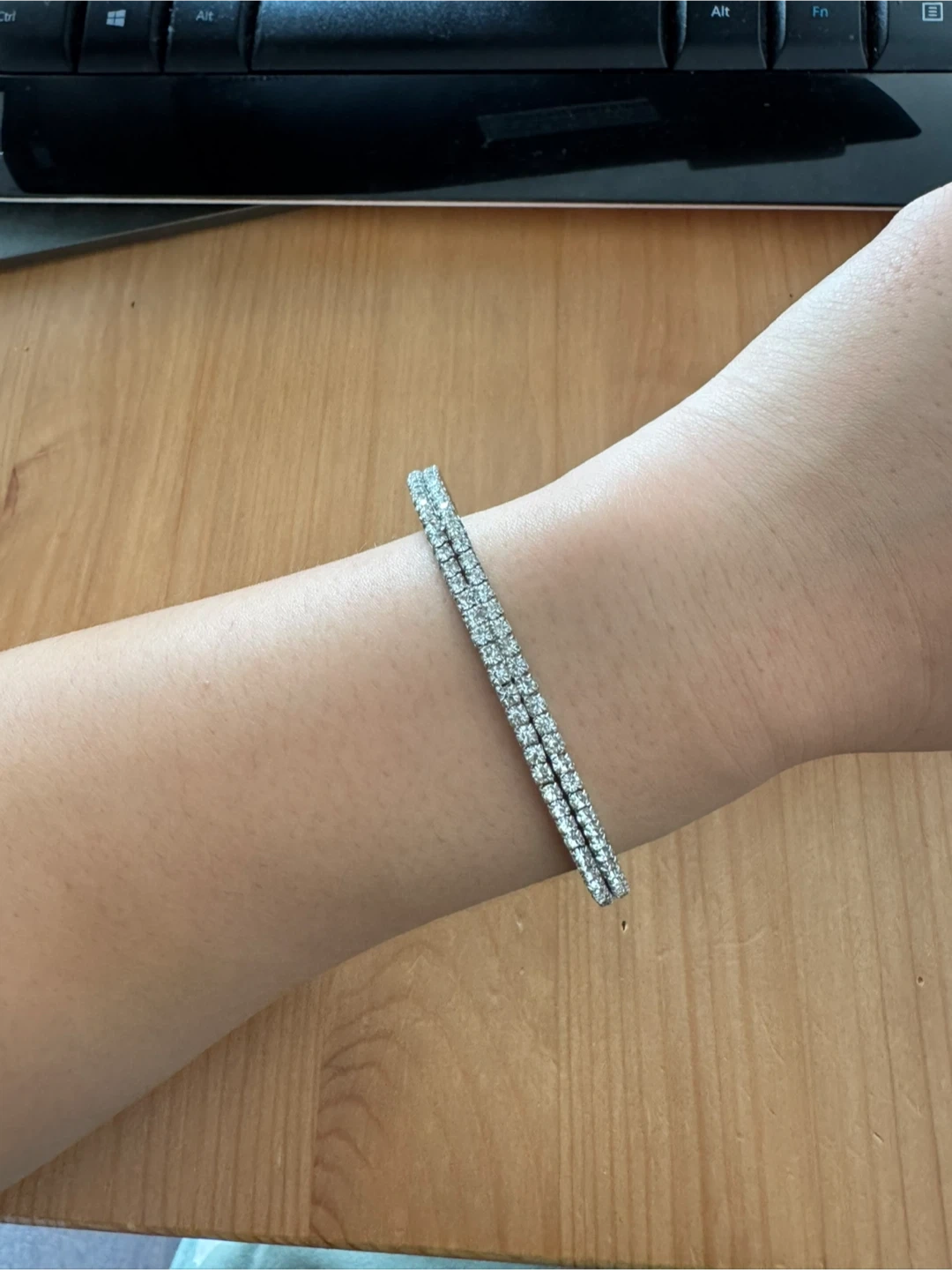 Selling a sparkly rhinestone bangle bracelet! It's in great condition and would be a lovely addition to any outfit