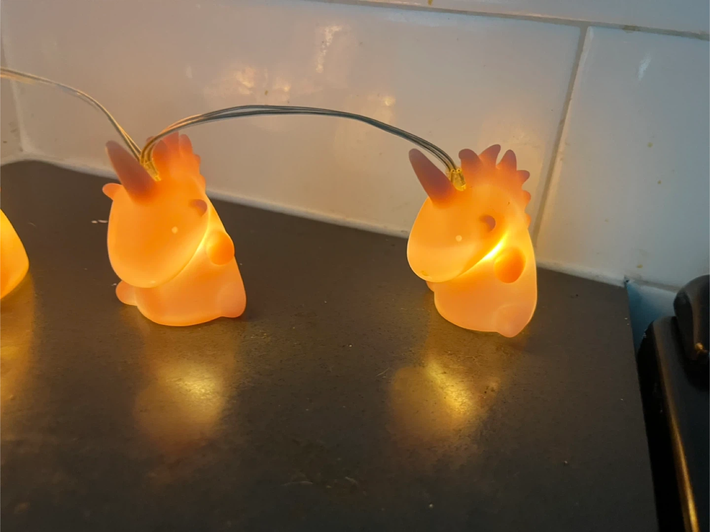 Add a touch of magic to any room with these adorable unicorn string lights! They're in great shape and ready to brighten up your space. Perfect for a kid's room or any unicorn lover