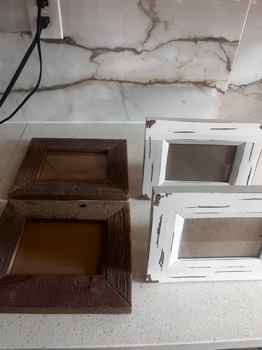 Selling a set of four rustic picture frames! Two are a darker wood tone and two are painted white with a distressed look. They're perfect for adding a touch of farmhouse charm to any room. Great for displaying your favourite memories. 2 displays 4x6 prints (white) 2 displays 5x7 prints (wood) Pick up only. Closest intersection is Jane St and Eglinton Ave