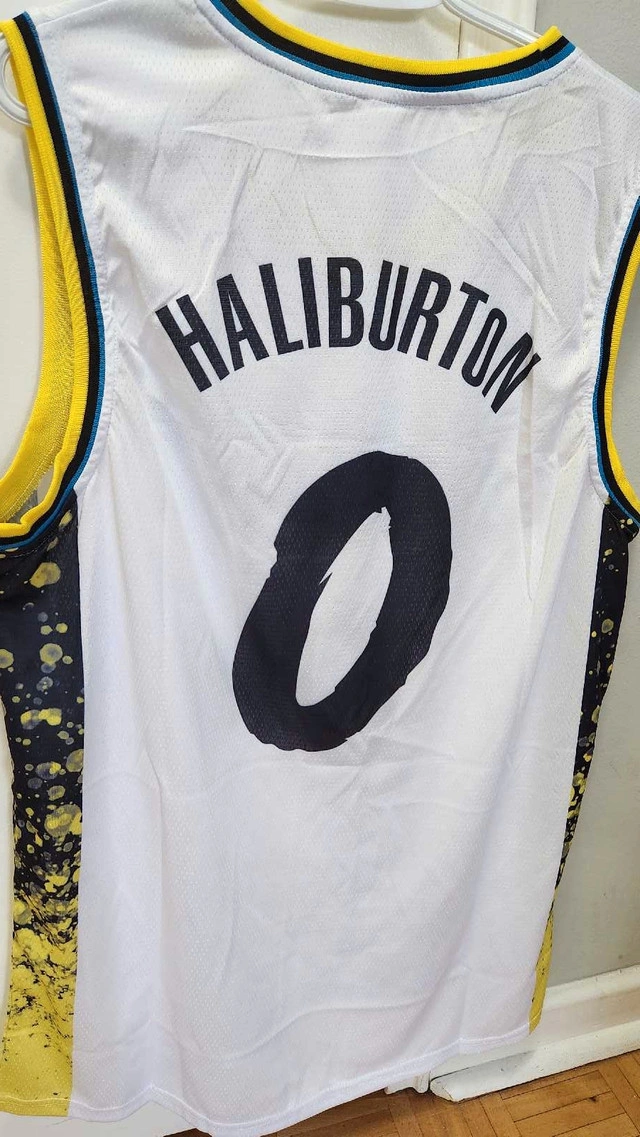 This basketball jersey is brand new and never been worn. I don't need this jersey as I had something else. This is size XL but could be used by large as well. Just perfect to wear for the NBA games, normal wear, or for indoor/outdoor game play. Haliburton is one of the famous superstars right now, and the Pacers just played in the NBA Finals. Ready for pickup in Mississauga, near Dundas & Hurontario. Check address:3041 Jaguar Valley Drive