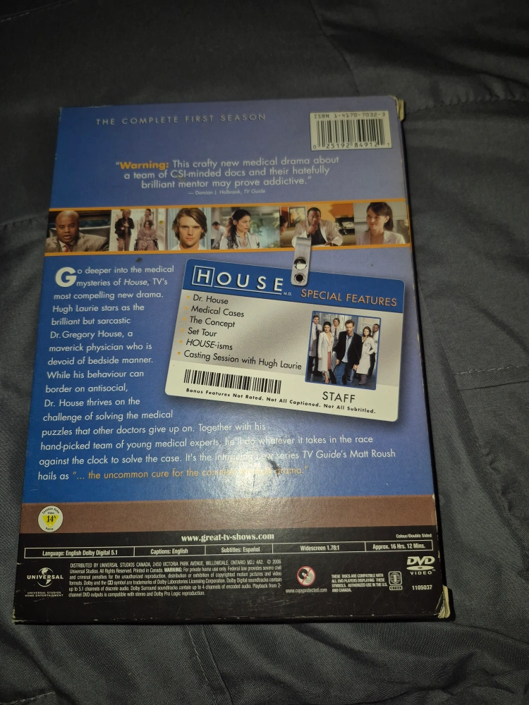 Selling the complete first season of House M.D. on DVD! This set includes all the episodes from season one, perfect for any fan of the show. Enjoy the medical mysteries and Dr. House's sarcastic brilliance from the beginning