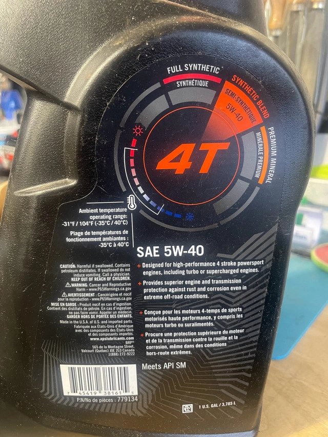 New SAE 5W40 synthetic blend motor oil. Seadoo, ATV, Price firm Amazon price $76+ tax