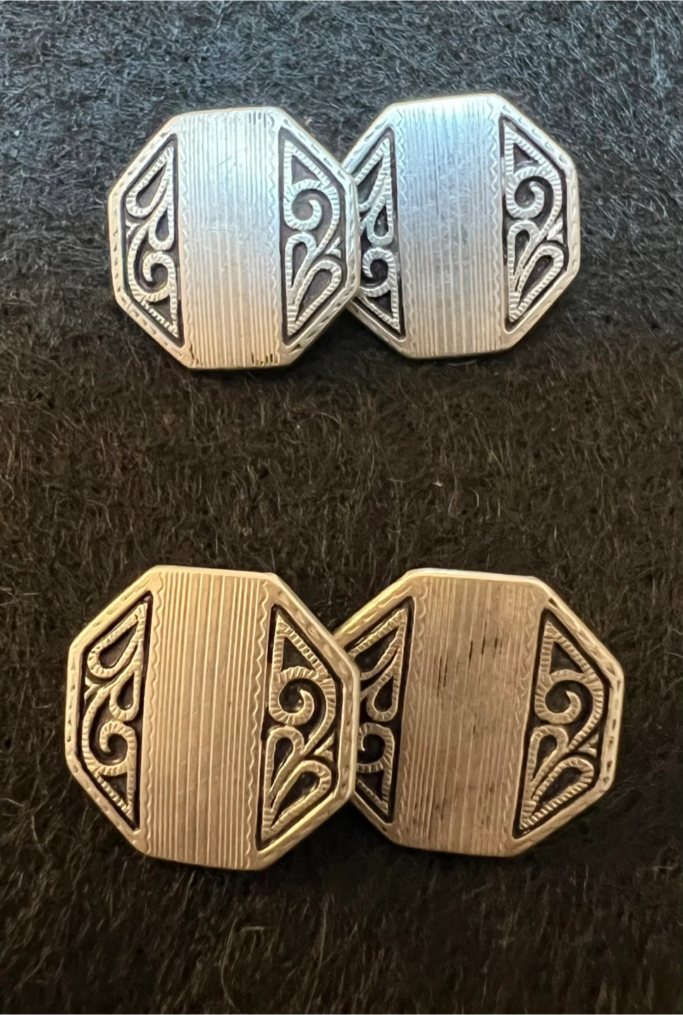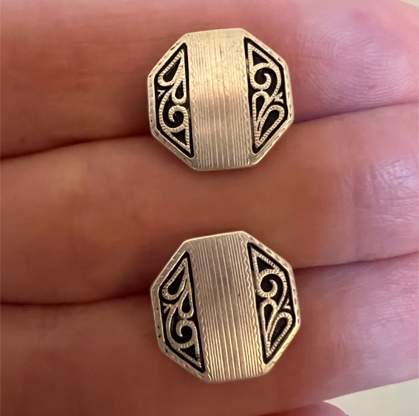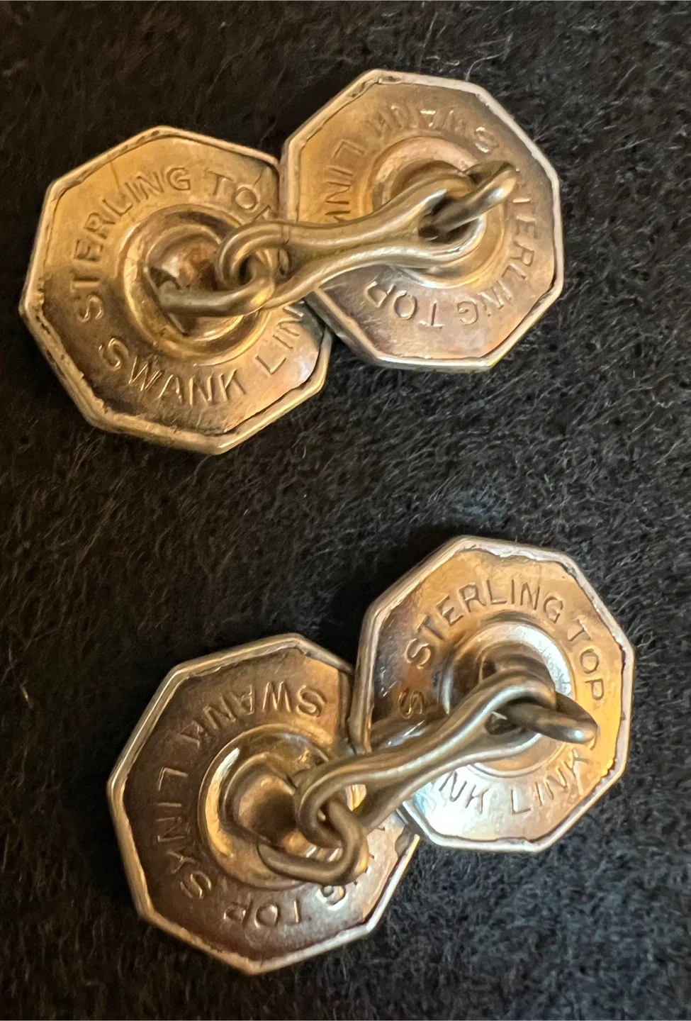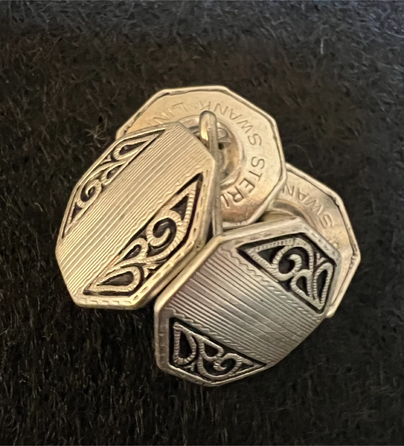 A pair of octagon Swank cufflinks Sterling top Clearly marked on the back (see my photos) These cufflinks combine the elegance of silver with the distinctive Art Deco aesthetic, making them a collectible and stylish accessory Great condition Asking $15 Interested? Message me and please check my other listings…
