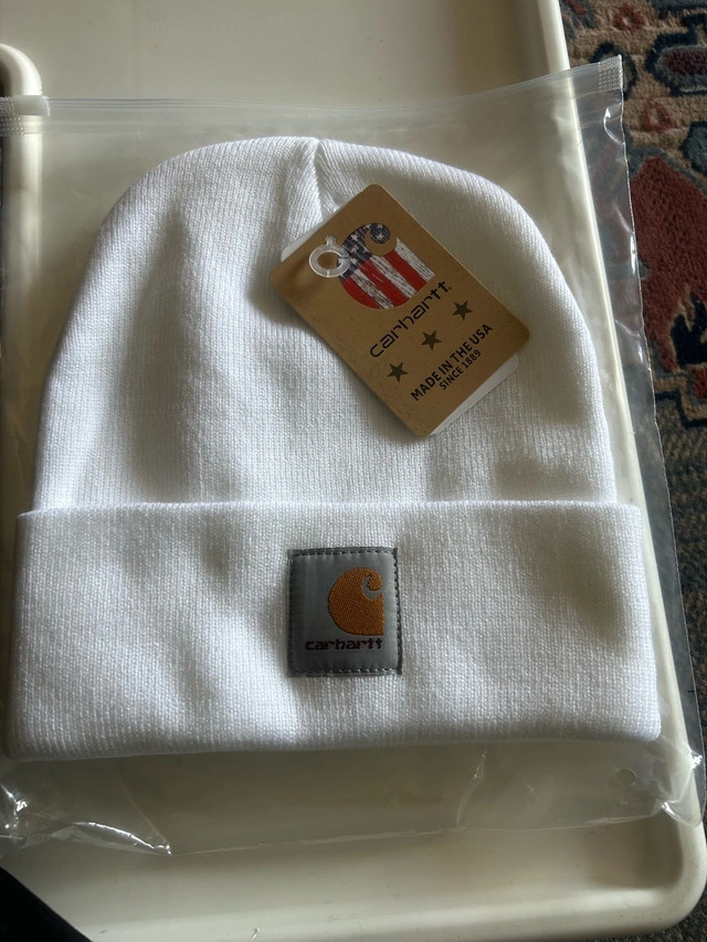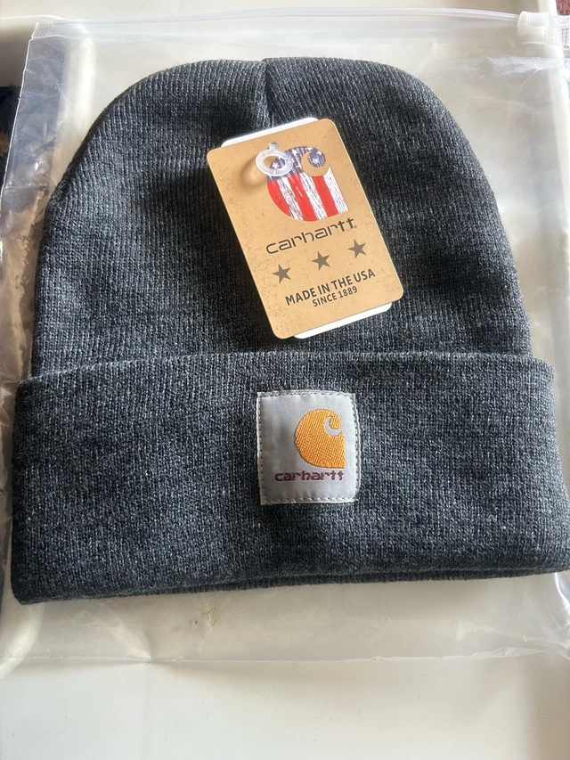 Get ready to brave the cold with this brand new Carhartt beanie! This warm and durable hat is perfect for those chilly Canadian winters. Specifications: * Brand: Carhartt * Material: Knit * Condition: New with tags Looking for a cozy topper? Don't miss out! Act fast, because if the ad's still up, this warm wonder is still available!