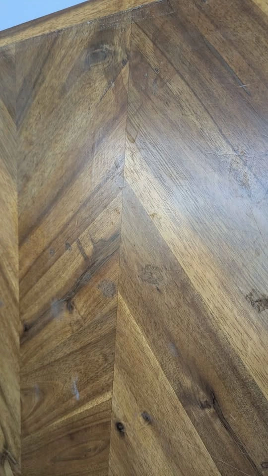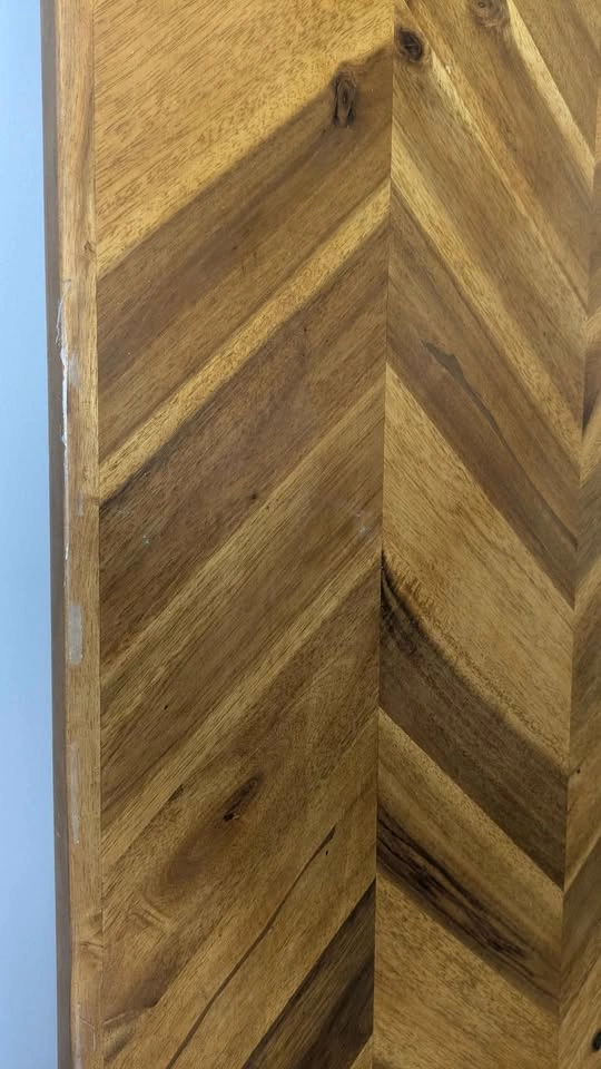 Chevron butcher block countertop 1" thick Measures: 57 7/8" × 25 5/8" Will need to be wiped down and 1 chip on an edge. Imperfections shown in pictures Pick up preferred, delivery available for additional fee