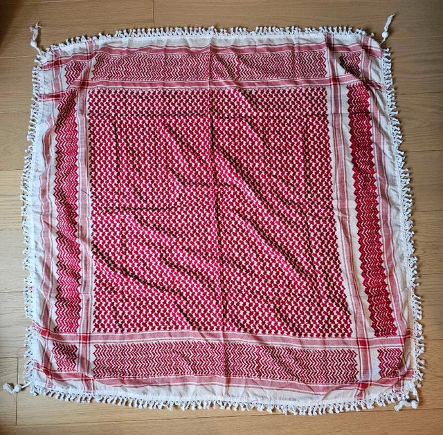 Brand New Full Size (1M x 1M) Red and White Keffiyeh Palestinian and Jordanian Style For Sale By: Owner