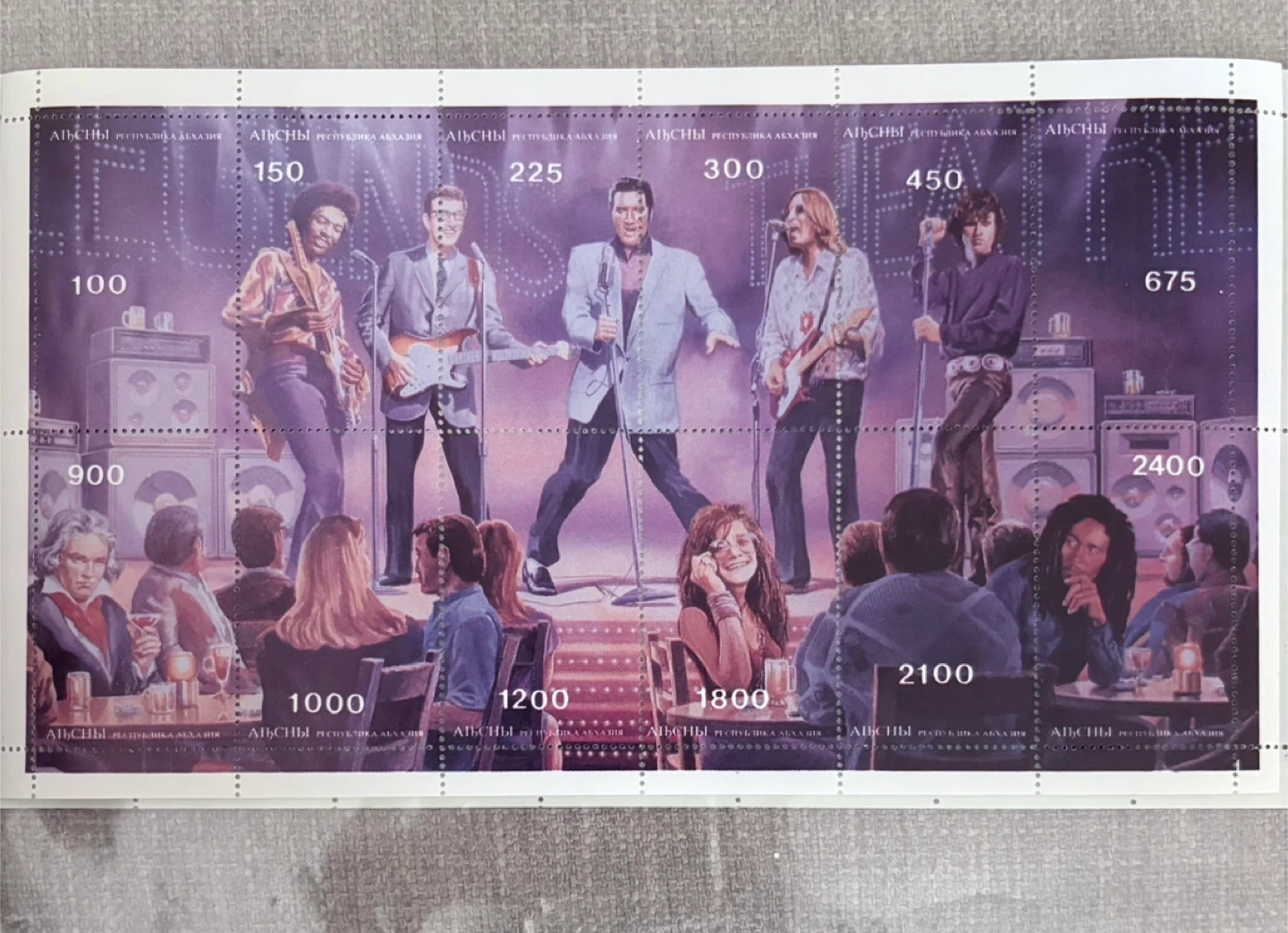 Sheet of postage stamps featuring Elvis Presley and other rock legends. Excellent condition Original gum Great for collectors or anyone who loves rock 'n' roll! Cash preferred or etransfer accepted from verified users Shipping options available Porch pick locations: Markham - Markham Rd & 16th Ave Oshawa - Wilson Rd & Adelaide Ave Pls feel free to ask me any questions