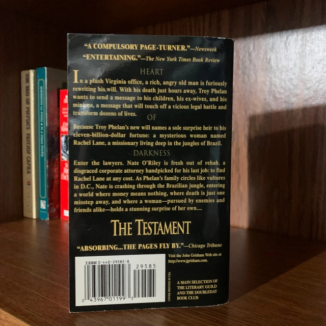 Add to your Collection, in good pre-owned condition. May show signs of normal wear from use, please see photos for the condition. Check my other listings, you may find what you’re looking for. Available for pick-up in SW Airdrie or Inglewood SE Calgary on weekdays. Delve into the gripping world of legal intrigue with John Grisham's "The Testament," a page-turner that's bound to capture your imagination. This paperback edition presents a compelling narrative that will keep adult readers at the edge of their seats, offering a thrilling escape into a realm of high stakes and complex characters. Crafted with the English-reading public in mind, this novel stands as a testament to Grisham's mastery of the fiction genre. Not inscribed and hailing from the United States, this book is a must-have for enthusiasts of courtroom drama and suspenseful tales that explore the darker sides of power and justice. Condition: Used - Good For Sale By: Owner