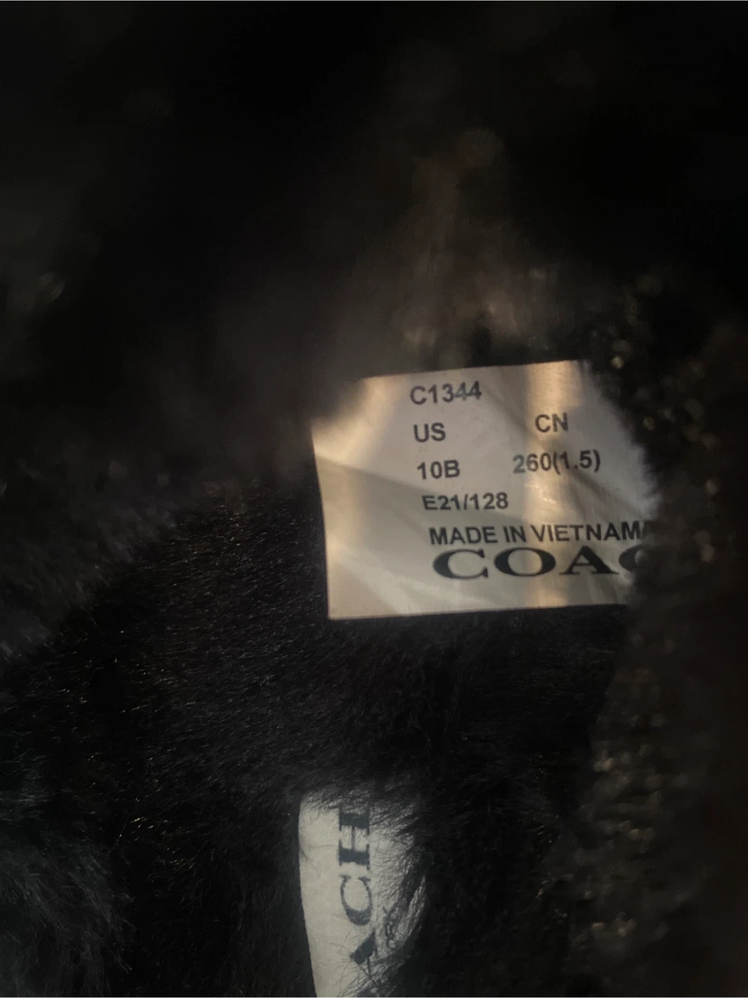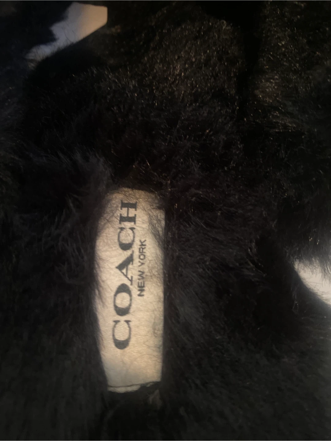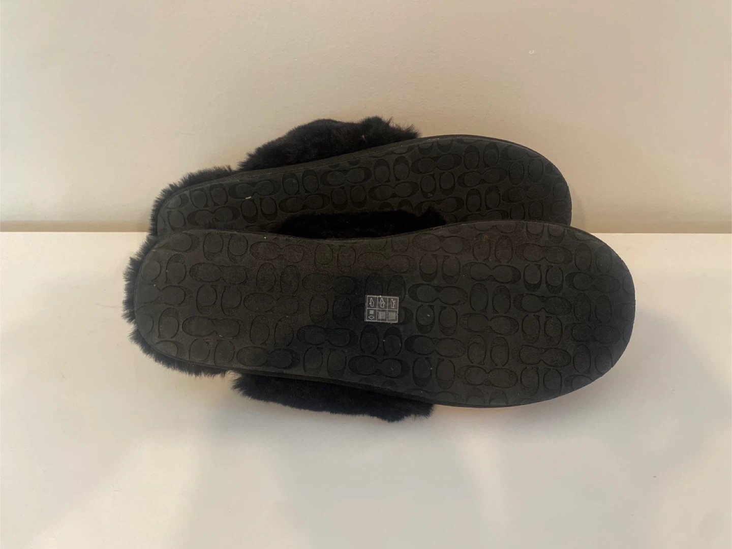 Cozy up with these Coach slippers! They're a women's size 10B in US sizing. These black slippers are super soft and perfect for wearing around the house. Pick up in Rocky Ridge.