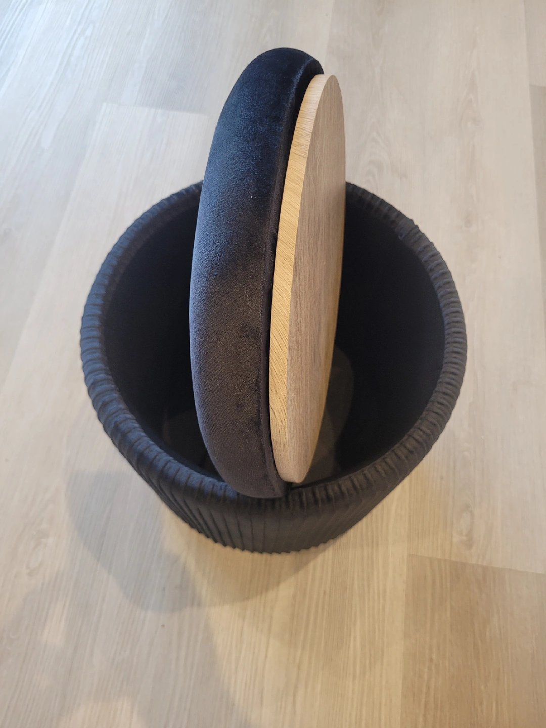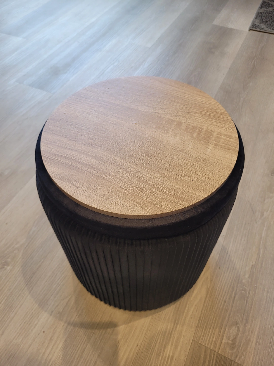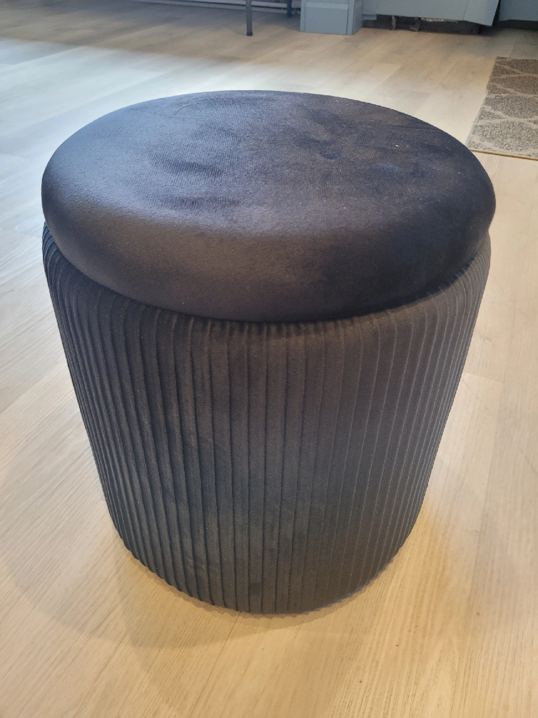 Selling a new round black ottoman with a wooden lid. It's in great condition and perfect for extra seating or storage! The lid is removable, providing a convenient storage space inside. Size: 12" x 14" * Pick up in store at 258 Main Street South, Newmarket (by appointment only to guarantee we are open). *** Payable by cash, debit or credit ***