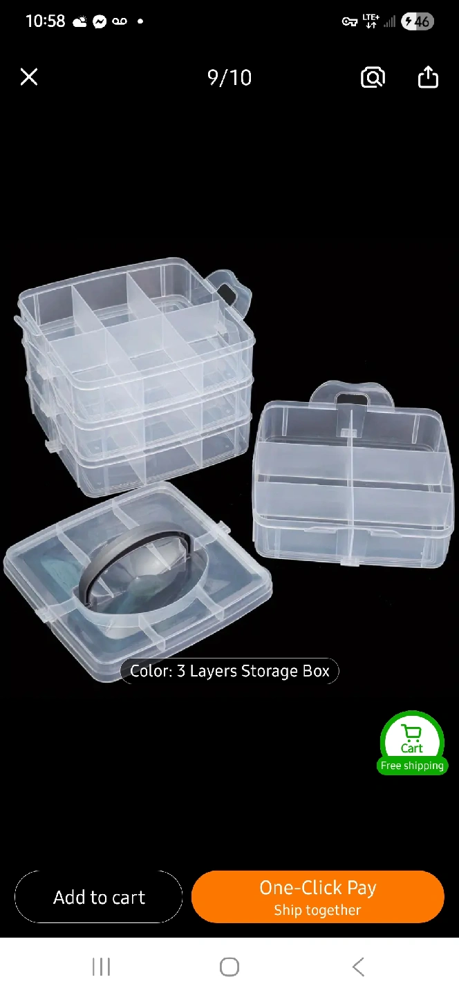Selling a clear plastic storage box with 3 layers! It's perfect for organizing small items like beads, crafts, or jewelry. The box is brand new and ready for a new home. Dimensions are approximately 14.5cm x 14.5cm x 12.5cm