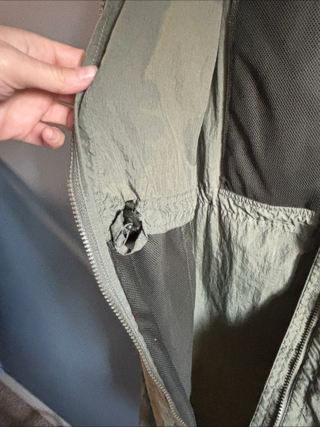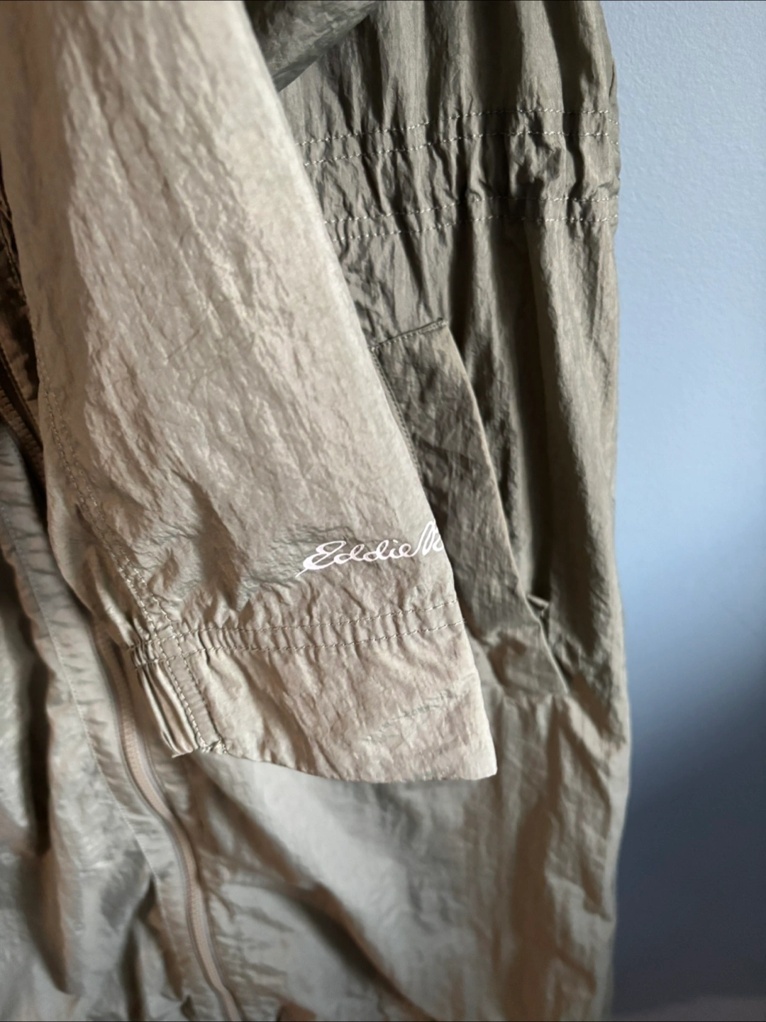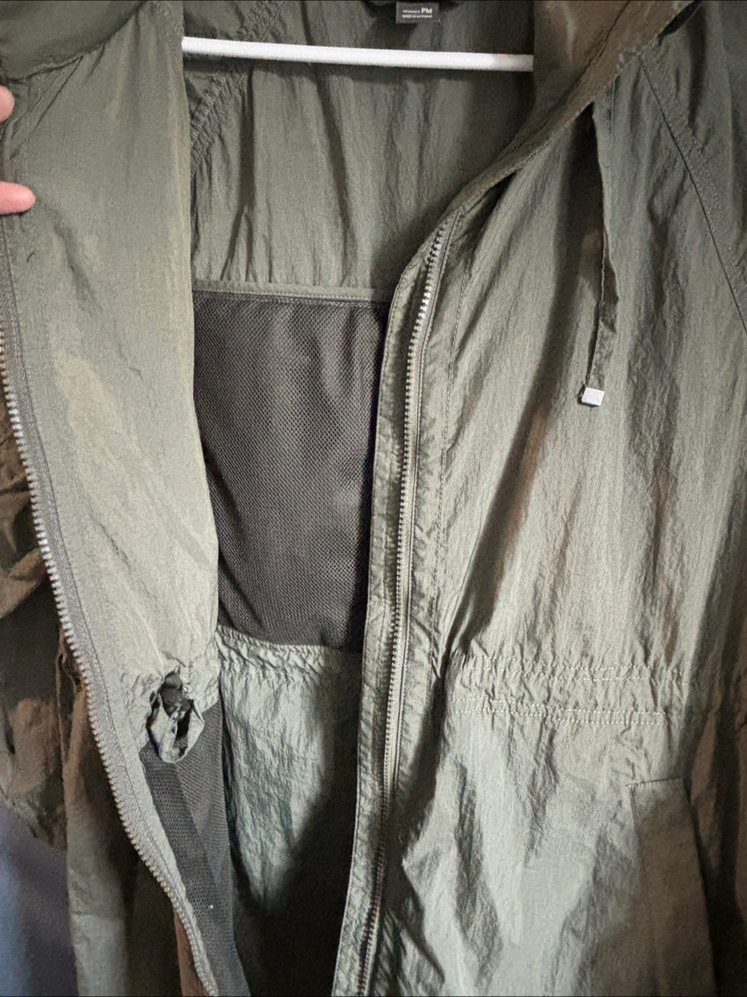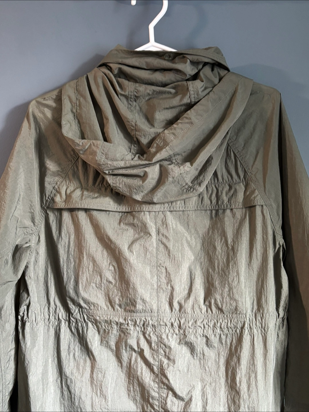 Here's an Eddie Bauer women's rain coat in size PM! It's a lovely olive green colour and is perfect for those rainy days