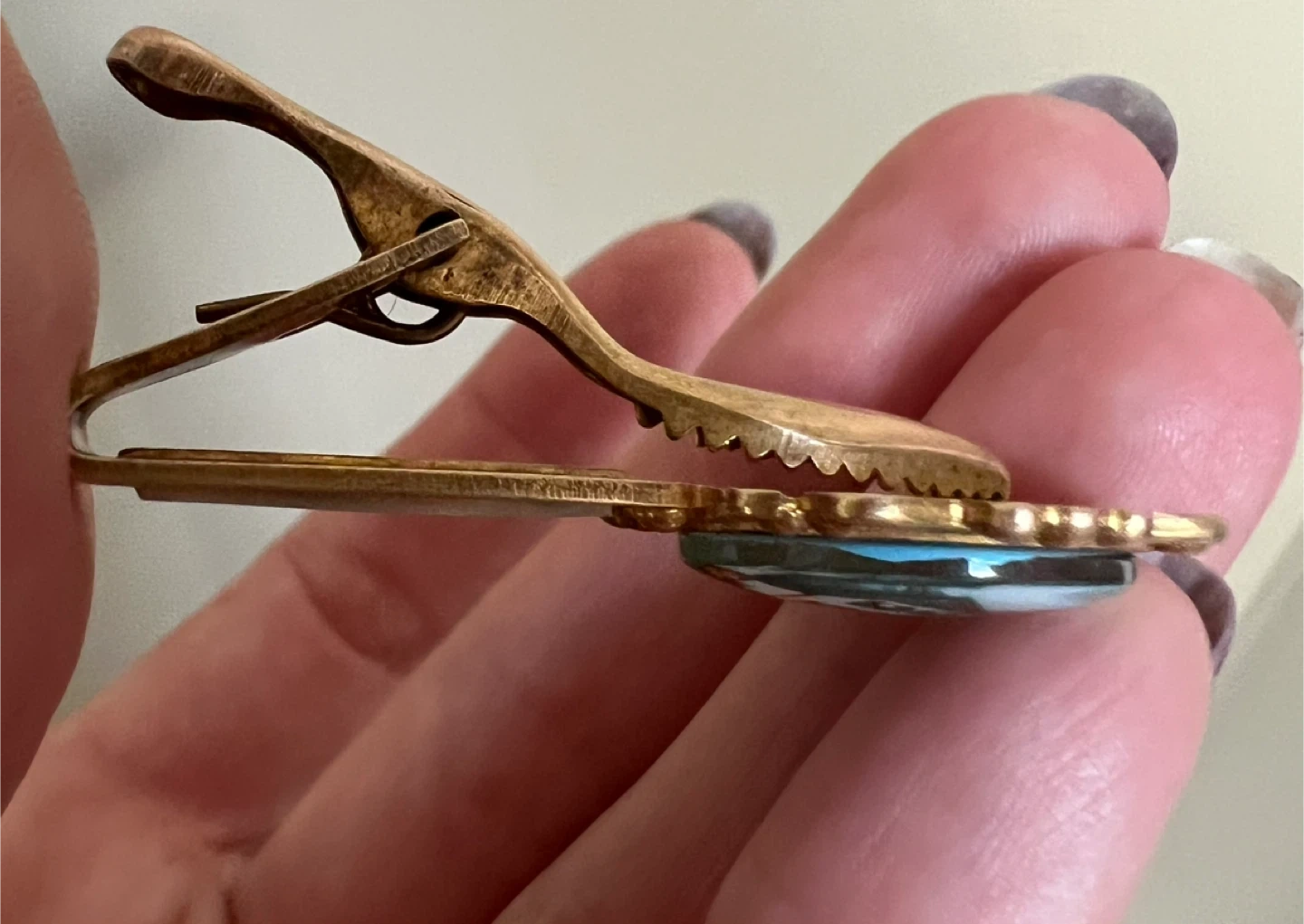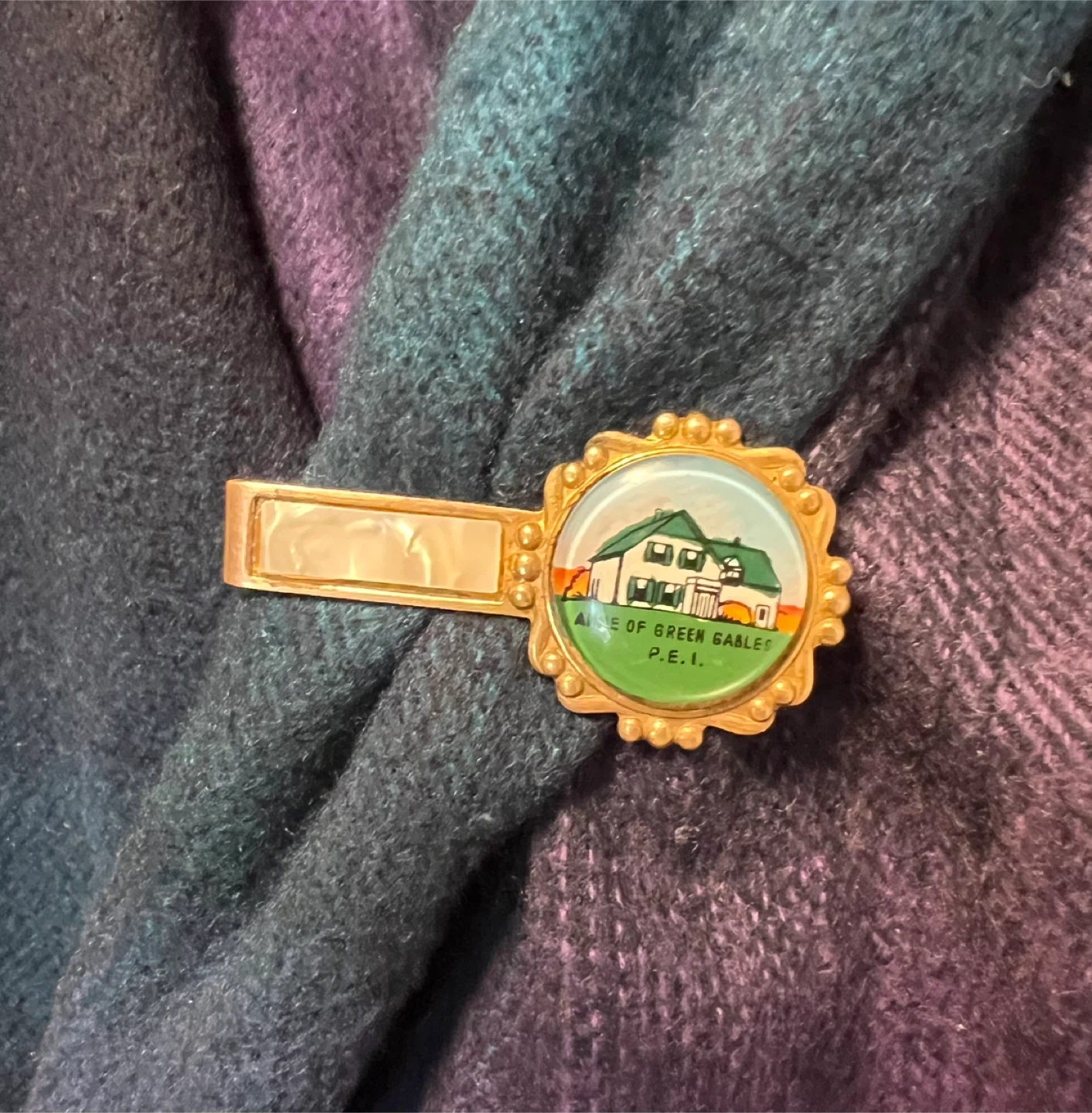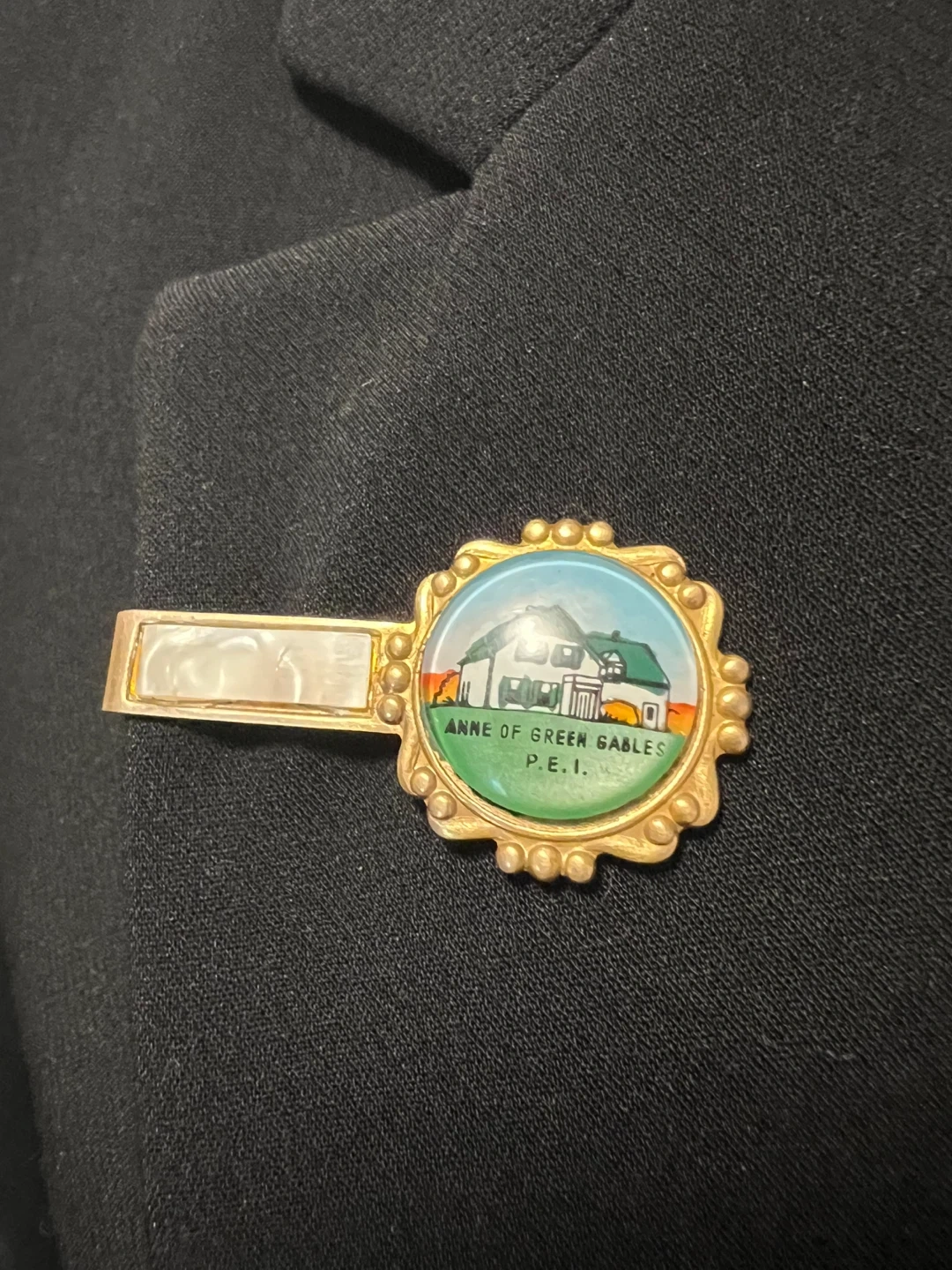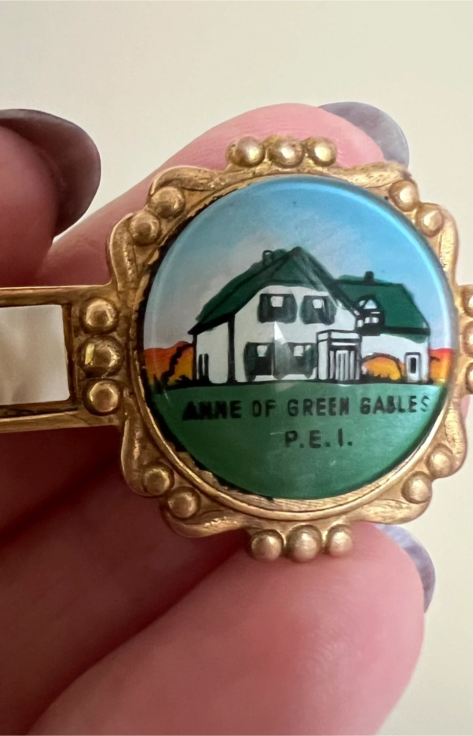Gold toned base with a rectangular mother-of-pearl inlay and a circular, enameled section featuring charming iconic farmhouse and a text that reads “ANNE OF GREEN GABLES P.E.I.” Great vintage condition Representing a subtle nod to Canadian literature!!! Wear it with pride!!! Revive it as a shawl or lapel clip!! Asking $10 Interested? Message me and please check my other listings…