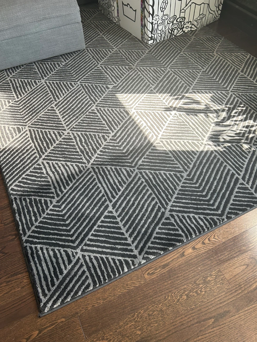 Selling an IKEA STENLILLE rug in good condition! It's a stylish rug with a geometric pattern. - Dimensions: 200x300 cm (6' 7" x 9' 10") - Material: 100% polypropylene pile Smoke free and pet free home.